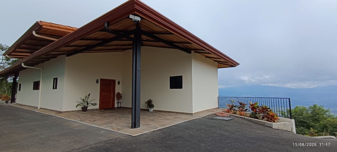 Majestuosa casa nueva en la cima de una comunidad privada en Atenas, con vistas panorámicas al Valle Central y a las montañas de la zona, en el clima fresco de Barrio Jesús, a solo 9 minutos del centro. La propiedad goza de gran privacidad y seguridad, junto a las fincas cafetaleras de Atenas, con una larga entrada privada que conduce a un amplio estacionamiento techado. El jardín, con paisajismo, es lo suficientemente grande como para tener un huerto privado, y el patio trasero ofrece espacio suficiente para una piscina. Al entrar, el diseño de planta abierta y los elaborados techos abovedados brindan una sensación de amplitud y luminosidad en toda la zona social. La espaciosa cocina cuenta con gabinetes artesanales y elegantes puertas de madera en toda la casa. La cocina, el comedor y la sala de estar dan paso a una acogedora terraza techada con vistas panorámicas espectaculares.
