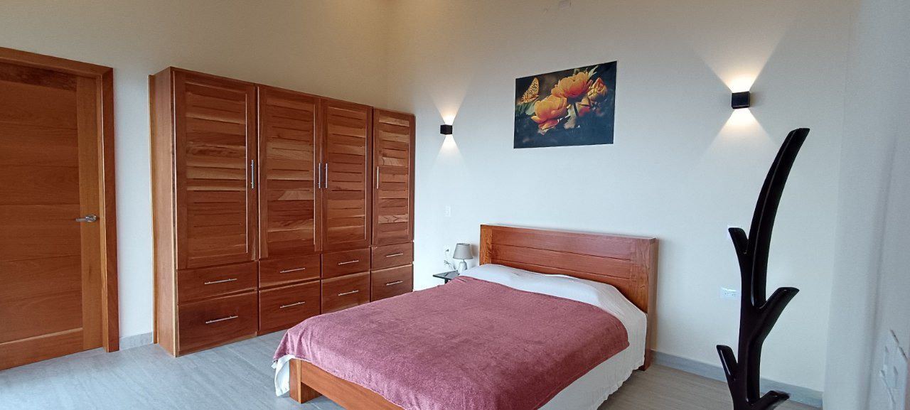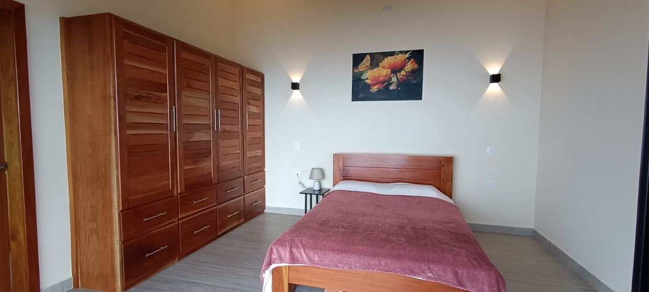 En la planta baja se encuentra una tercera habitación con baño, ideal para que los invitados tengan su propio espacio privado.