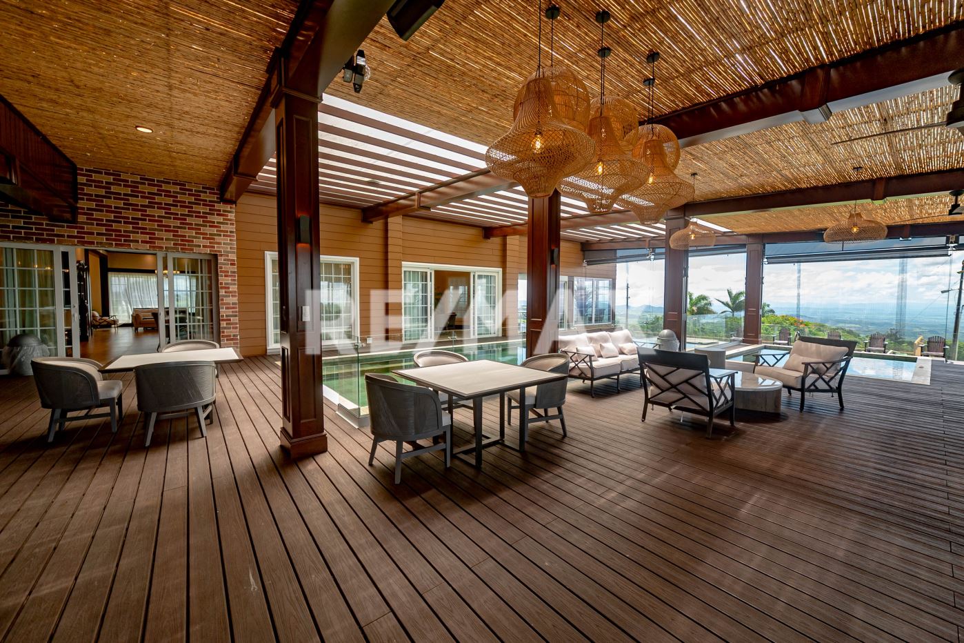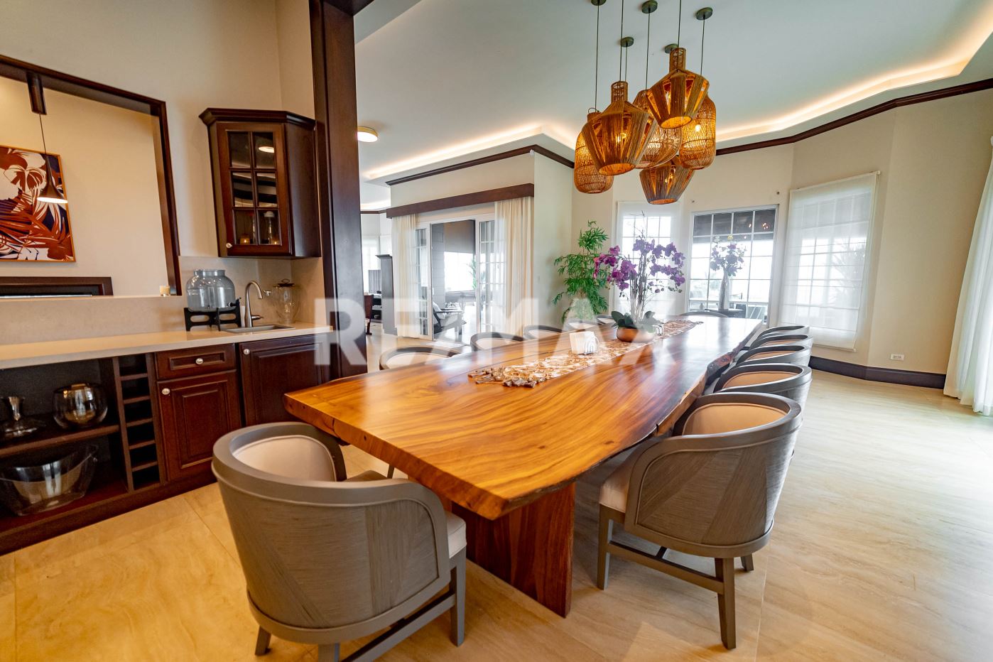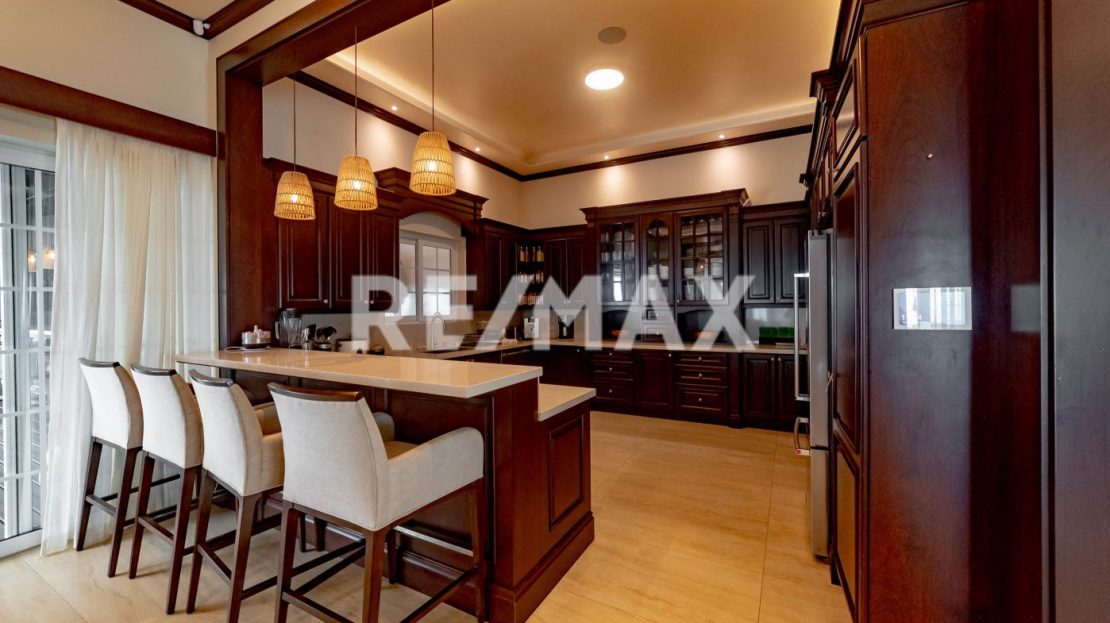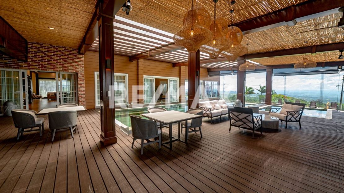 Located in the scenic hills of Tierras Morenas in the Tilarán canton of Guanacaste, Mansion Morena is a stunning eight-bedroom, six-and-a-half-bathroom luxury estate for sale in Guanacaste Costa Rica offering space, privacy, and panoramic views. This beautifully built home showcases high-end construction materials and was designed for comfort, entertainment, and connection with nature. From nearly every room, enjoy breathtaking sunrise and sunset views over the rolling hills of Costa Rica.