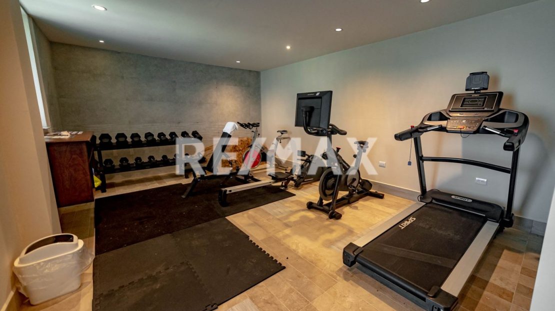 The main residence includes a private swimming pool and jacuzzi, perfectly positioned next to a cozy indoor bar and open-air terrace — ideal for relaxing or entertaining guests. The lower level houses a fully equipped private gym with two showers and two restrooms. On the main floor, you’ll find several game tables overlooking the hills and unforgettable sunsets.