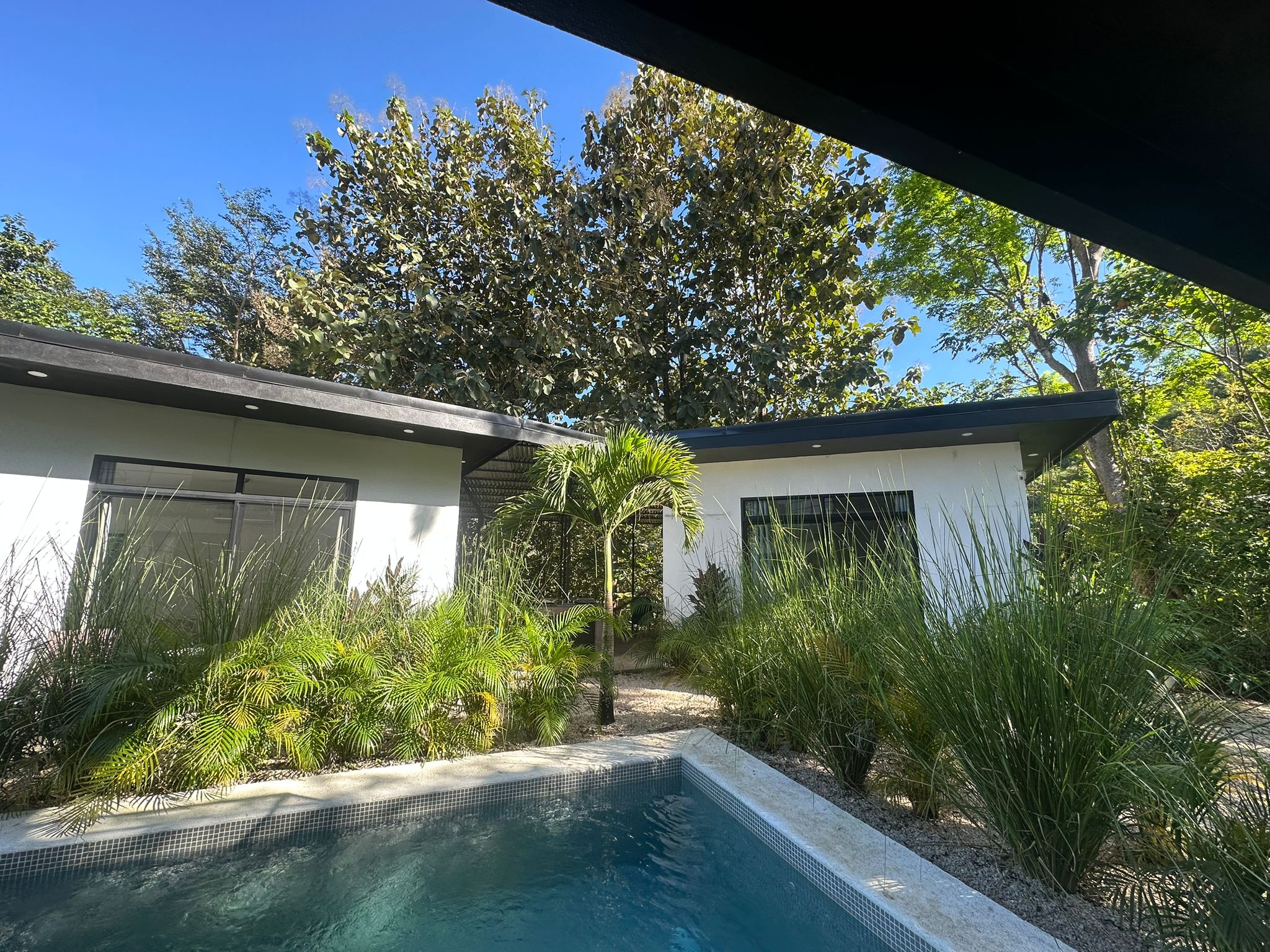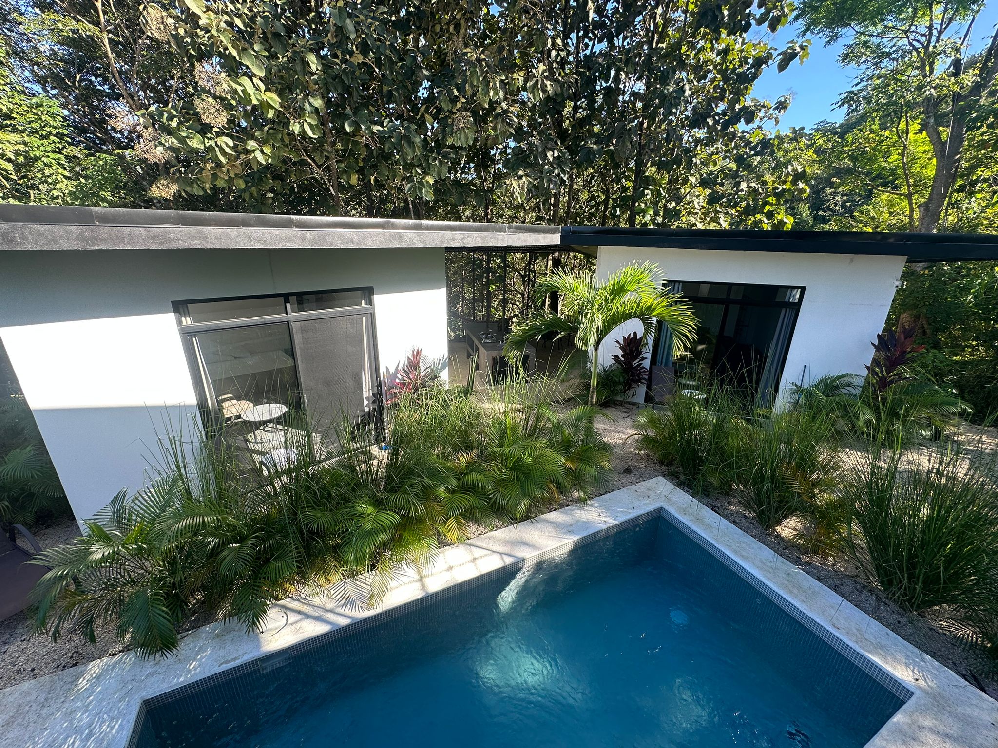 At the heart of the property lies a beautiful pool, a true oasis to cool off under the tropical sun, surrounded by lush vegetation. Imagine spending your afternoons relaxing, serenaded by birdsong and the soft jungle breeze.