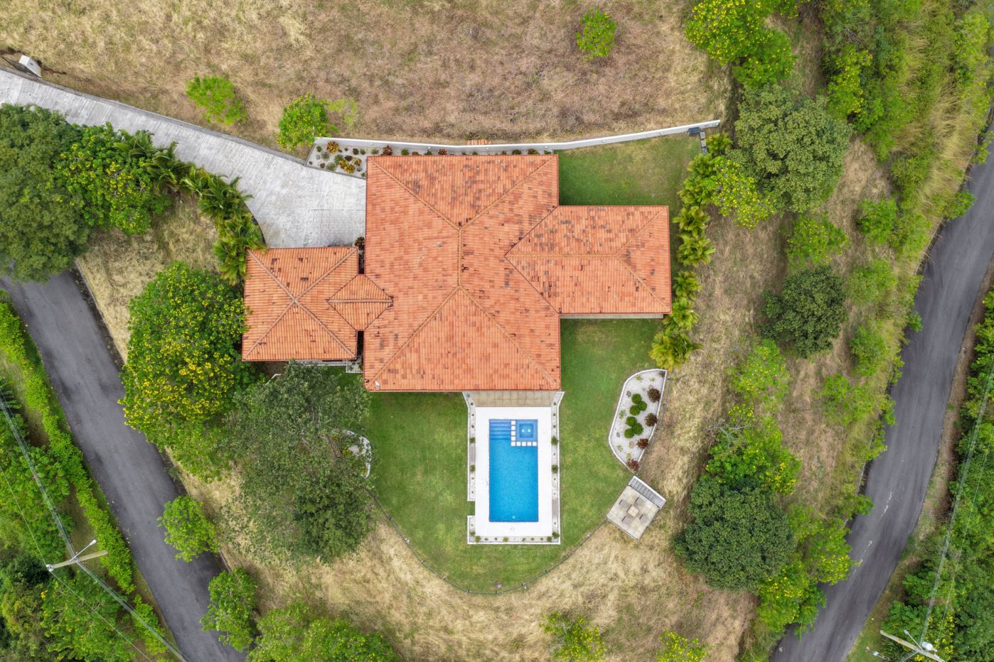 Casa de estilo mediterráneo con acabados modernos eclécticos en Hacienda Atenas, con una de las mejores vistas de esta zona de la ciudad. Esta casa, muy bien cuidada, se encuentra a solo 8 minutos del centro y ofrece impresionantes vistas de la campiña ateniense. La casa está orientada al sur, hacia Puriscal, y tiene una vista de casi 300 grados que incluye algunas vistas del Océano Pacífico y gran parte de la capital, San José. El largo camino de entrada privado conduce a una cochera para dos autos con amplio espacio de almacenamiento e infraestructura eléctrica para un taller en casa. La entrada formal conduce a una amplia sala de estar-comedor que exhibe muy bien la carpintería que se encuentra en toda la casa, incluyendo el techo de listones de madera interior y exterior, la carpintería en toda la amplia cocina y los baños, y los muebles del dormitorio. La cocina cuenta con una excelente iluminación, ideal para un chef, con una pieza central ultramoderna sobre la gran isla de la cocina.
