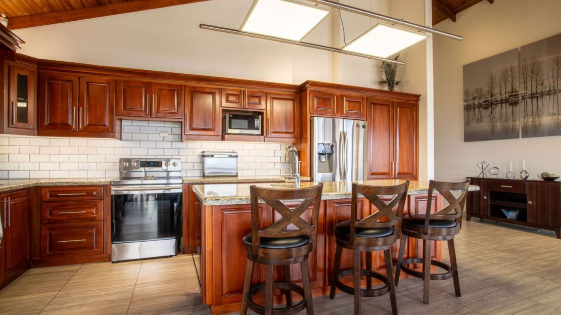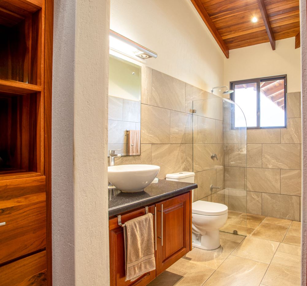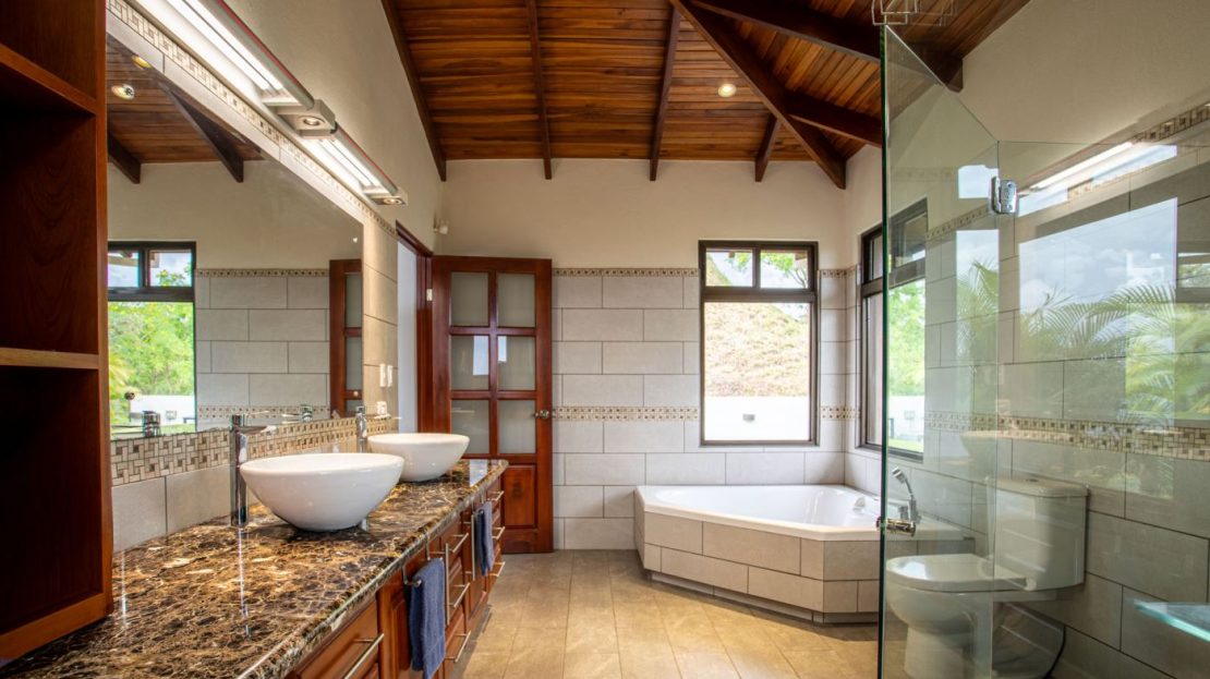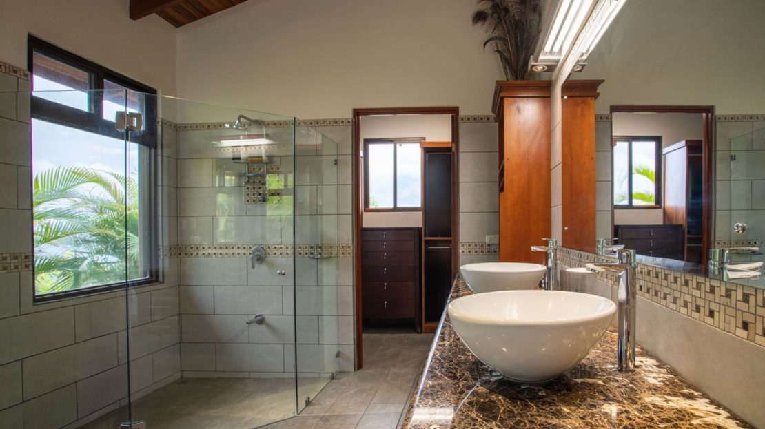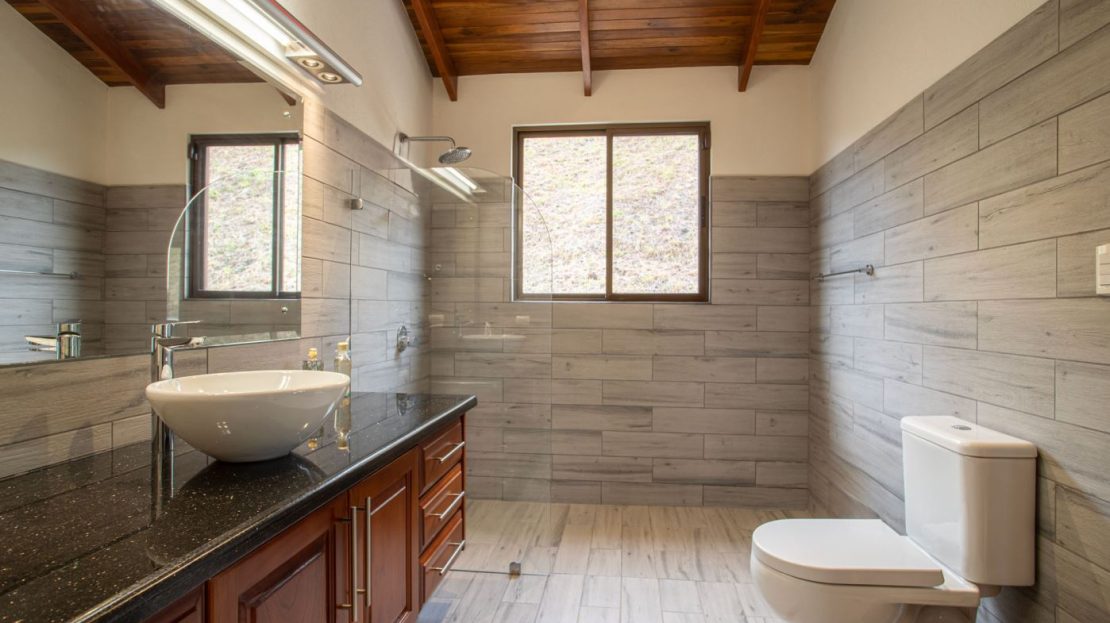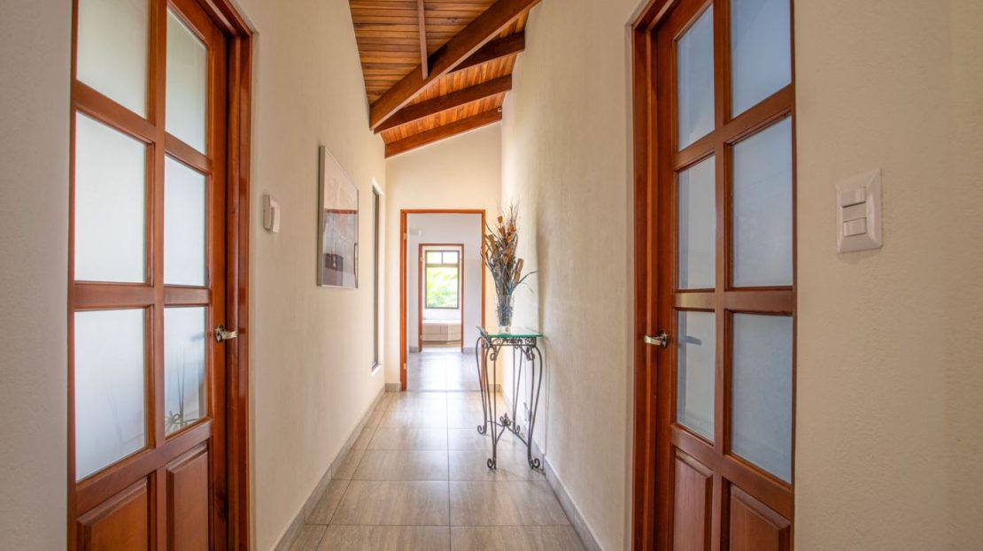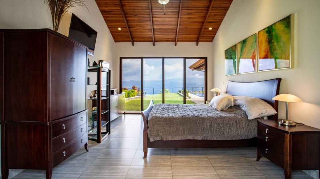 Mediterranean-style home with eclectic modern finishes in Hacienda Atenas with one of the best views on this side of town. This very well kept home sits just 8 minutes from town center and features amazing views of the Atenas countryside with the home facing south towards Puriscal and has almost a 300 degree view that includes some views of the Pacific Ocean and a good portion of the capital San Jose. The long private driveway leads two a 2-car carport with plenty of storage and electrical infrastructure for a home workshop. The formal entry leads to a large living-dining room area that nicely displays the woodwork to be found throughout the home including the inside and outside wood slatted ceiling, the woodwork thoughout the ample kitchen and bathrooms and the bedroom furniture. The kitchen has great lighting throughout ideal for a chef with an ultramodern centerpiece over the large kitchen island.