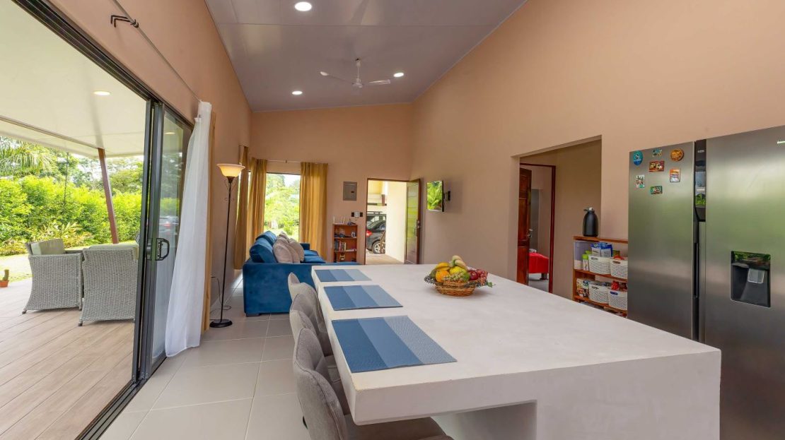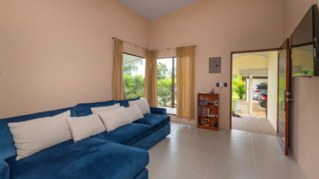 Ubicada en la comunidad tranquila de Villanueva de Quepos, esta casa de concreto ofrece un estilo de vida relajado rodeado de naturaleza, a solo 15 minutos de Quepos y la Marina Pez Vela, y 25 minutos del Parque Nacional Manuel Antonio.
