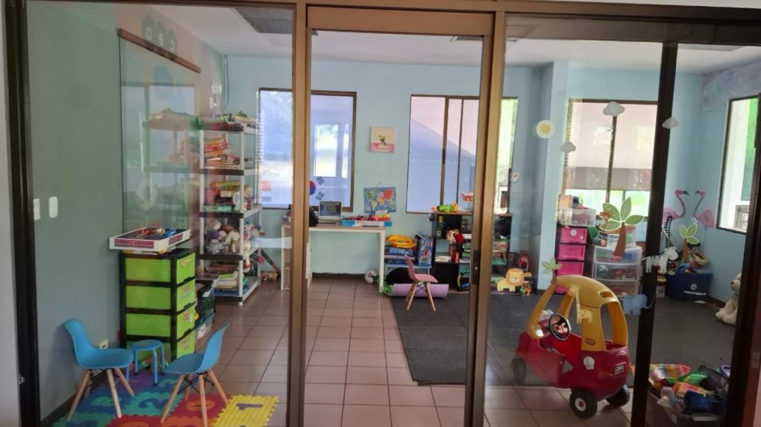 Mixed use property close to everything in La Guacima. The property currently consists of four buildings ideal for yoga studios, martial arts, small businesses, guest accommodations, etc. The site is 3300 m2, with over 620 m2 of interior space (over 800 m2 built space). It includes 4 offices of varying sizes, a large studio, currently used for martial arts, an event or restaurant space, a sports bodega, currently with a volleyball and basketball court, and a two-level, four bedroom house, looking out over the forest.