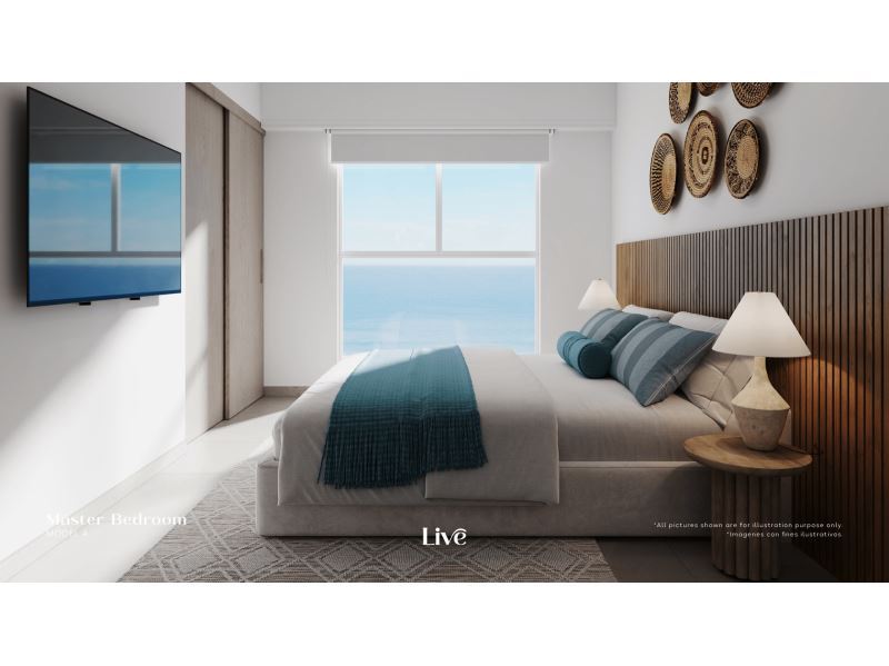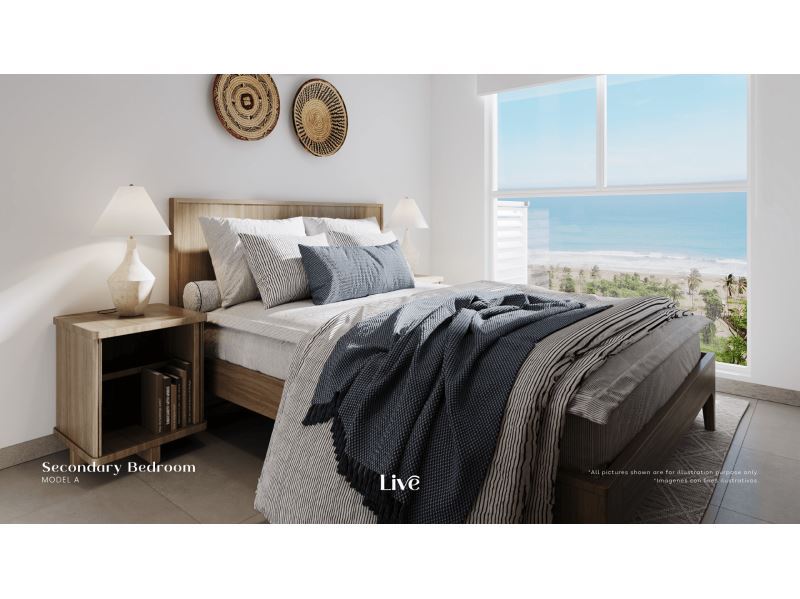 • 2 dormitorios y 1 baño completo, ideal para parejas, familias pequeñas o inversión en alquiler vacacional. • Sala, cocina y comedor en concepto abierto, con excelente iluminación natural. • Cocina totalmente equipada, con acabados modernos y espacio de almacenamiento. • Área de lavandería independiente, práctica y discreta. • Ubicación privilegiada en el piso 10, con brisas frescas, privacidad y vistas elevadas.