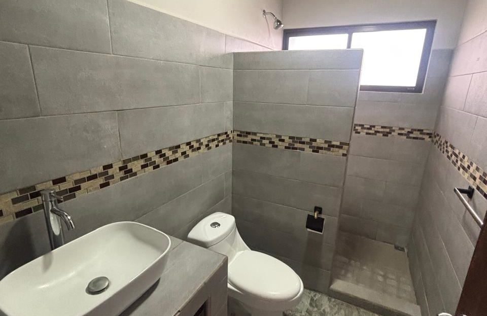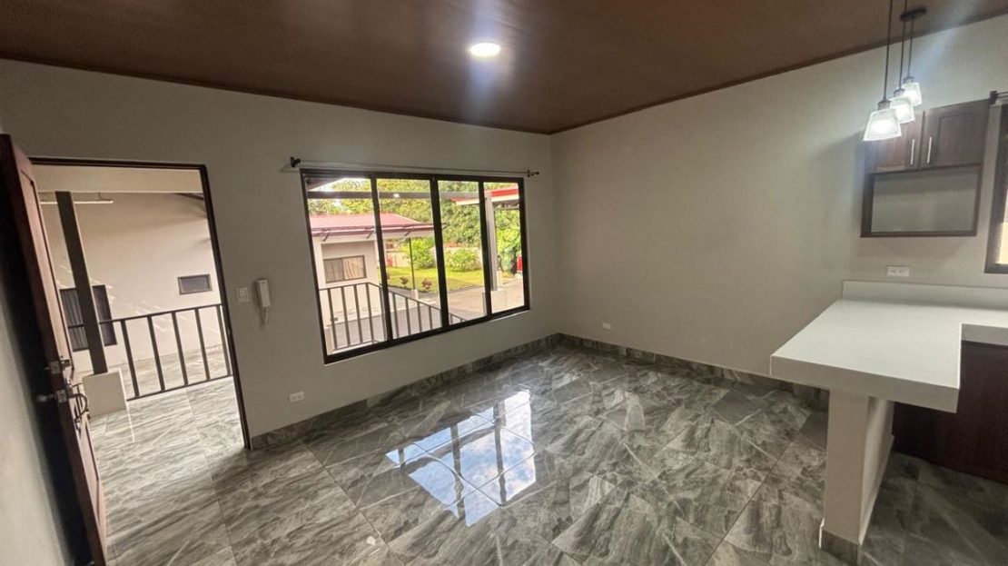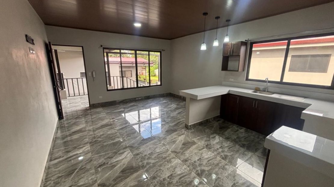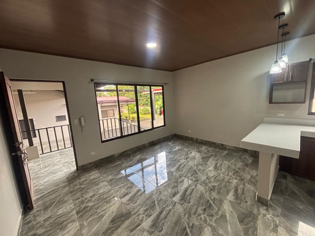 Área de lavandería con doble lavabo.Estacionamiento seguro y cerrado con espacios techados. Sala de estar y comedor amplios con iluminación moderna. Hermosos pisos pulidos en toda la casa para un fácil mantenimiento. Internet de fibra óptica básico. El alquiler incluye agua hasta 6000 colones. Mascotas: depende.