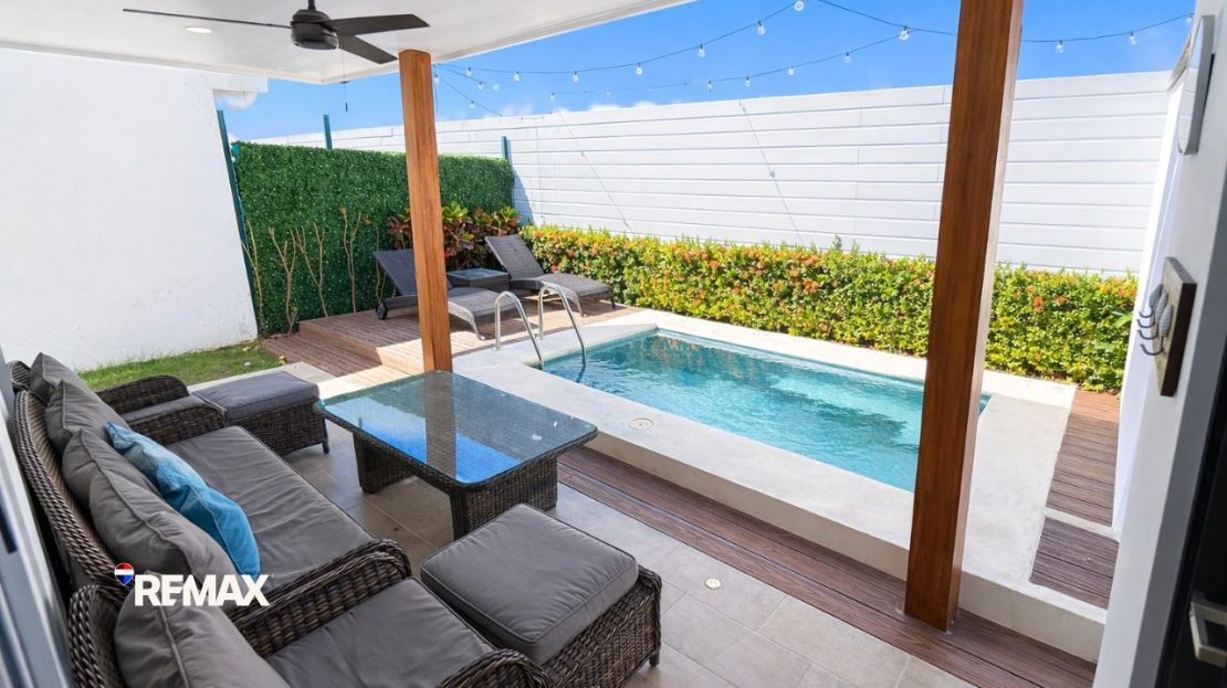 This single-level contemporary home features approximately 125 m² (1,345 sq ft) of construction on a 183 m² lot (1,970 sq ft), thoughtfully designed to maximize indoor-outdoor living. The open layout connects the living room, dining area, and modern kitchen, creating a bright and welcoming space perfect for relaxing or entertaining. The home comes fully furnished, making it truly move-in or rental ready.