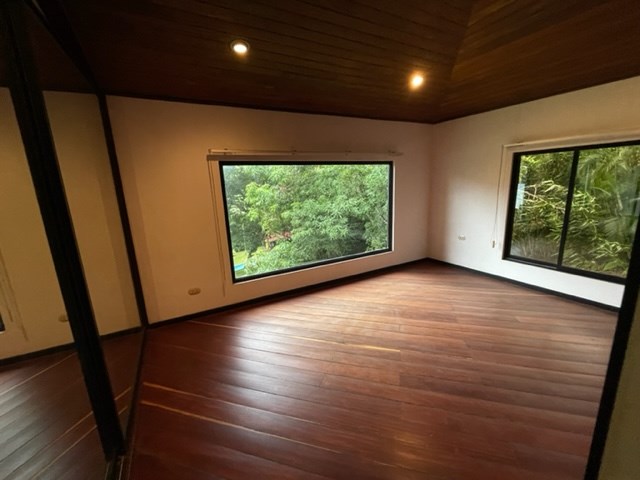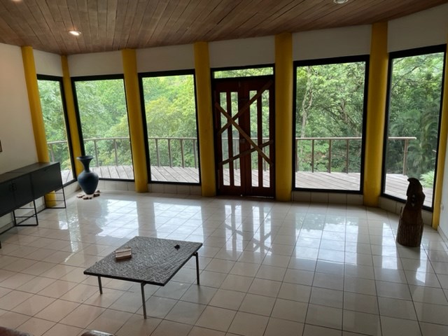 Modern build with large pool, 2 guest home and ranchos. This modern-style home is located on a large 10,170m2 (2.5 acre) lot in Los Angeles of Atenas, only 5-6 minutes from Atenas Center in the countryside which features plenty of usable rolling hills, 2 guest or caretaker homes, a large swimming pool and pool and and 2 ranchos for large gatherings. The home has open design concepts with plenty of balcony areas. There is modern kitchen and ample living areas. The home has precious woodwork throughout. Added amenities is an attached apartment with independent entrance, 2 car enclosed garage and added office area on the ground floor.