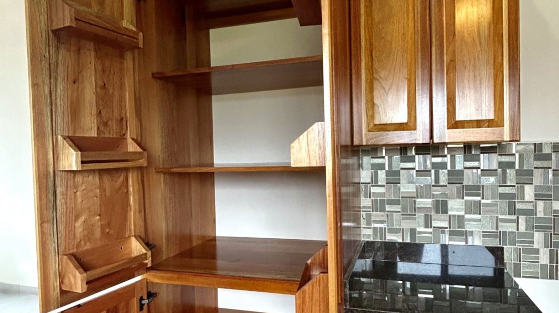 En el interior, puertas y gabinetes de cedro hechos a mano, encimeras de granito y elegantes azulejos ofrecen lujo y calidez. La cocina y la sala de estar, de concepto abierto, disfrutan de abundante luz natural y ventilación, realzadas por grandes ventanales, iluminación empotrada y ventiladores de techo.