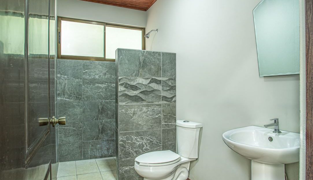 Modern designed & newer home close to Atenas Center at the end of a quiet and safe neighborhood. It’s a short drive to Atenas Center and a short walk to neighborhood grocery stores and restaurants. The lot has plenty of room for a nice size orchard, added construction or pool. The home is made of block construction with Spanish tiling throughout. The homes has tall ceilings with plenty of light with an open kitchen, dining and living room floor plan that leads way to two guest bedrooms with a guest bathroom and a master bedroom and bath suite. There is an additional room used presently as an office. There is an additinal space with a skylight currently used as a storage area. In the back of the home is the present laundry area.