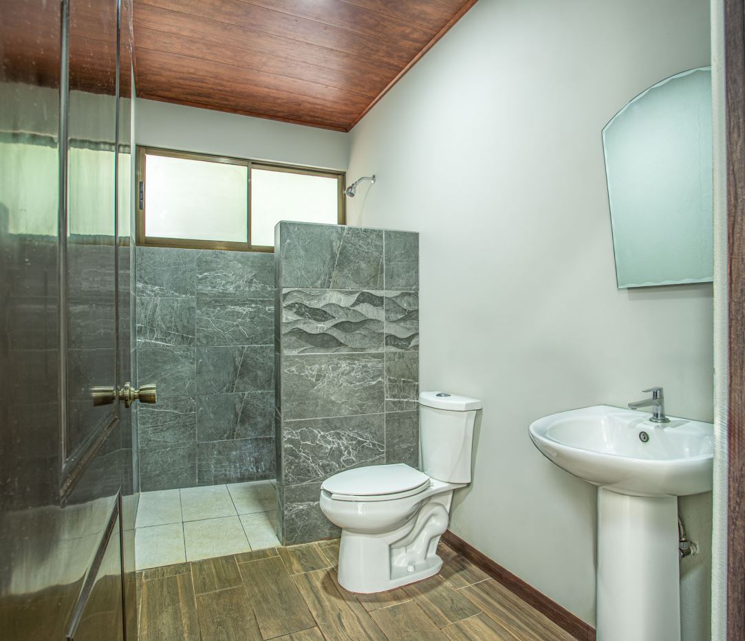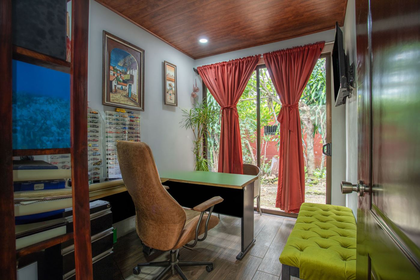 Modern designed & newer home close to Atenas Center at the end of a quiet and safe neighborhood. It’s a short drive to Atenas Center and a short walk to neighborhood grocery stores and restaurants. The lot has plenty of room for a nice size orchard, added construction or pool. The home is made of block construction with Spanish tiling throughout. The homes has tall ceilings with plenty of light with an open kitchen, dining and living room floor plan that leads way to two guest bedrooms with a guest bathroom and a master bedroom and bath suite. There is an additional room used presently as an office. There is an additinal space with a skylight currently used as a storage area. In the back of the home is the present laundry area.