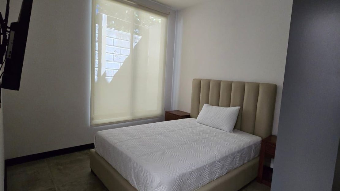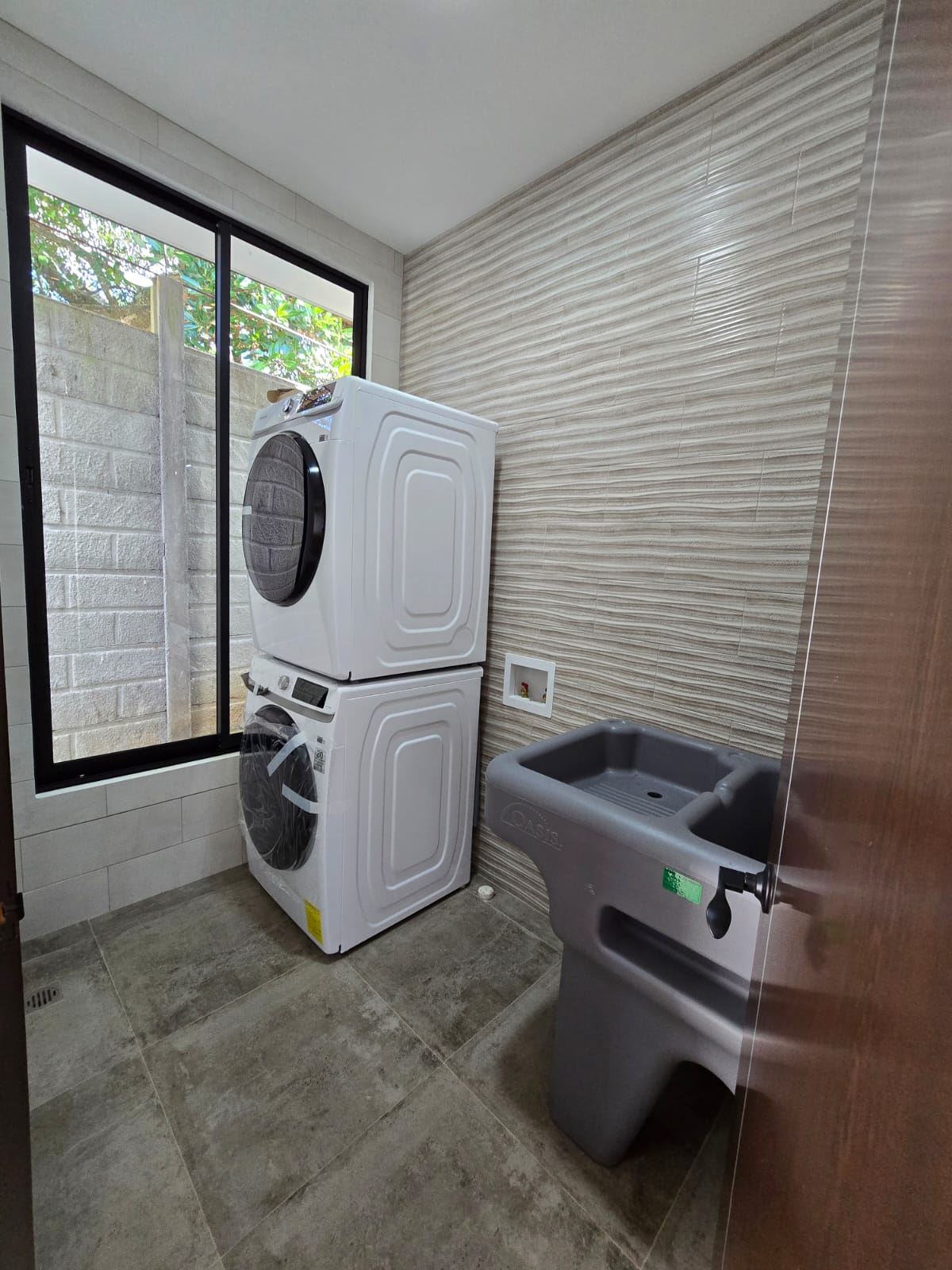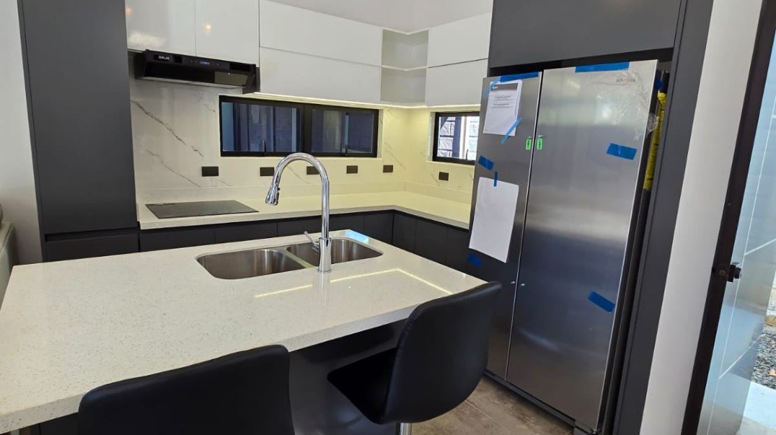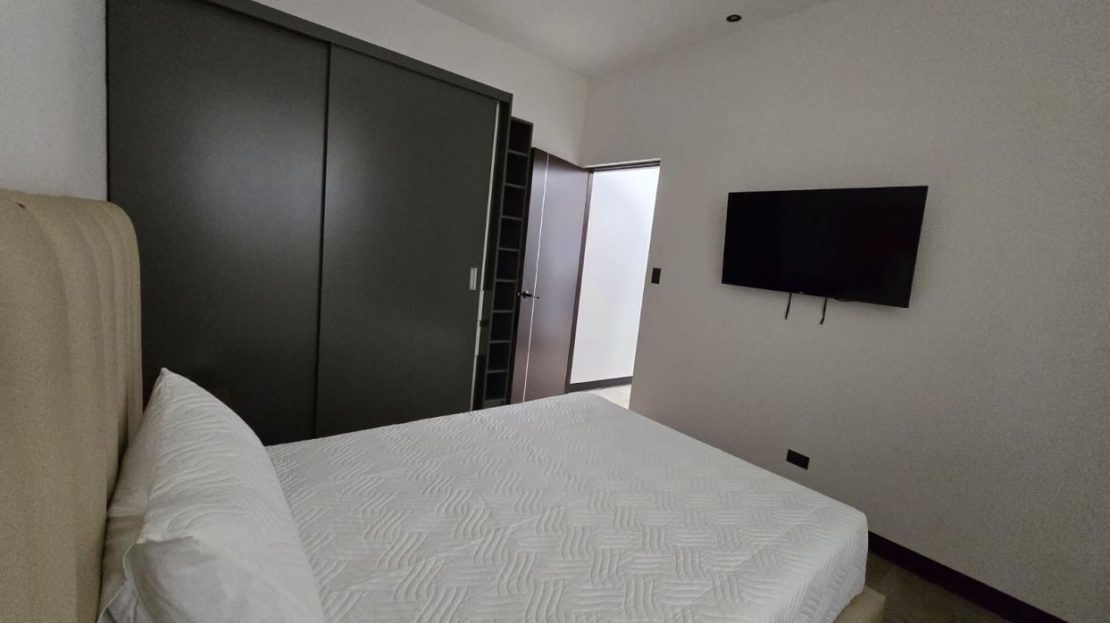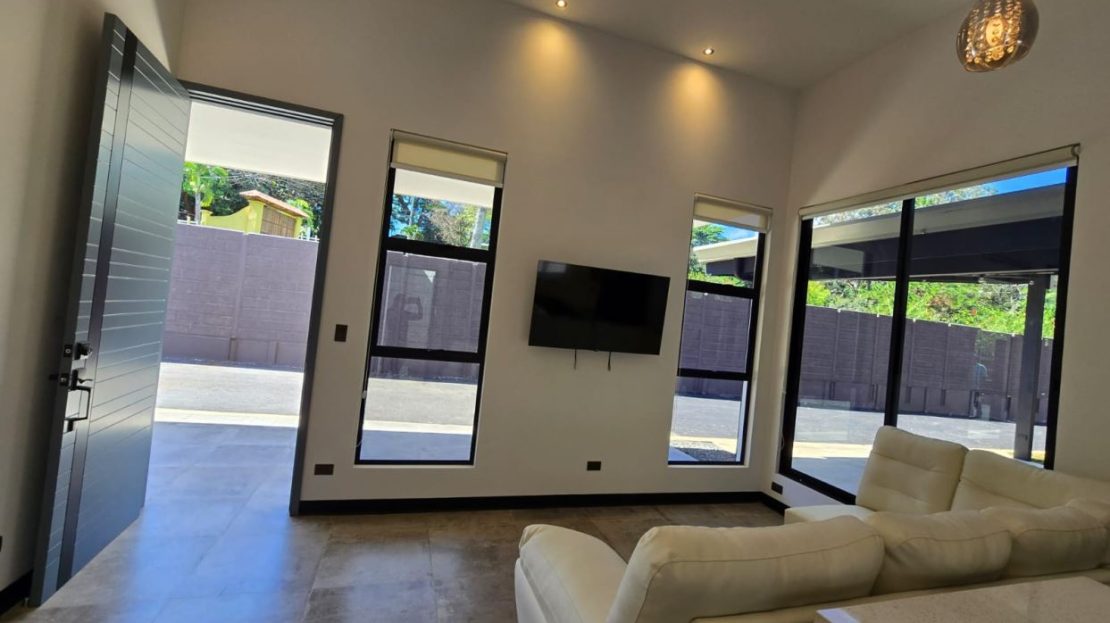 La casa está amueblada, cuenta con 2 camas Quin, torre de lavado, 2 TV, cocina, refrigeradora, muebles de sala, bancos de comedor, persianas.