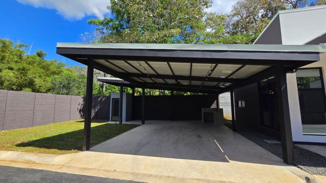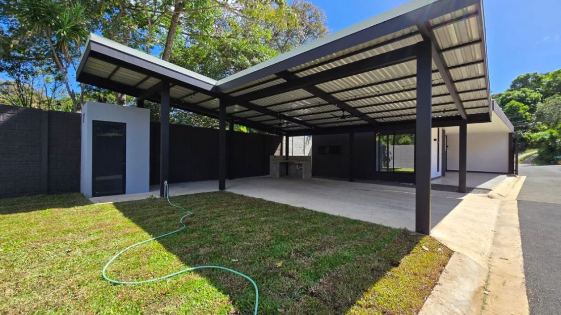 Ideal house for a couple with a child or a single person. Value is very accessible and even negotiable. Newly built all in block located 10 minutes from Atenas Center in Morazan de Atenas. Land is 281m2 and construction is 60m2. 30 meters from the public street in a very quiet and safe area in the best climate in the world. Surrounded by nature, beautiful views. It has 1 bedroom with bathroom, an office that can also be a small room, half bathroom, dining room with an island all in granite as well as the sink. There is a large 2-car garage that can also double as an inviting social bbq area with an adjacent 1/2 bathroom Wide glass windows and doors. All fenced and with electric gate and alarm in the house.