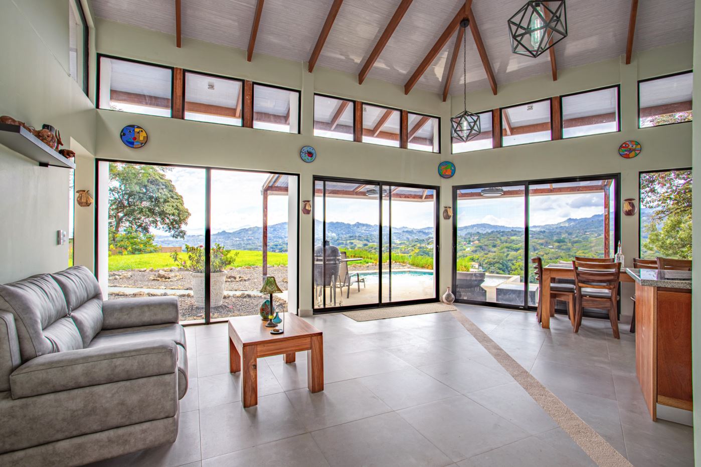 Se pueden encontrar diseños modernos en esta comunidad cerrada en un entorno natural en el campo de Atenas. Esta casa está ubicada en la comunidad privada de Cerro Luna en Barrio San José, a unos 12 minutos del centro de la ciudad. La propiedad cuenta con vistas de 300 grados hacia la capital de San José, las montañas de la zona y una buena parte de la pequeña ciudad de Atenas. El diseño de la casa cuenta con una sala de estar y comedor social común de planta abierta junto a una cocina moderna con carpintería artesanal en todas partes. Esta área conduce al acogedor porche cubierto y a la piscina. El dormitorio principal con baño en suite se puede encontrar en un extremo de la casa y dos dormitorios de invitados en el extremo opuesto con baño de invitados. La propiedad está rodeada de hermosos jardines y también se puede encontrar un estudio de invitados independiente en el extremo opuesto del lote con un área de cocina-comedor y baño completo.