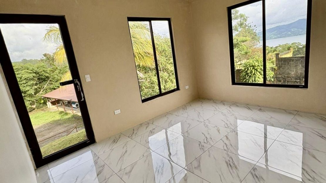 This newly constructed two-level, two-bedroom, two-bathroom home is nearing completion and offers a rare opportunity; the seller is open to any reasonable offer! Situated on a peaceful hilltop in the quaint, authentic Costa Rican town of Nuevo Arenal, the property boasts elevated views of Lake Arenal from select vantage points.