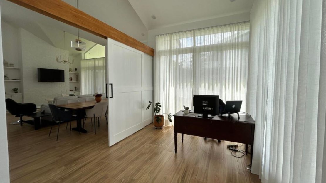 Versatile area that can serve as a small gym, office, or playroom.