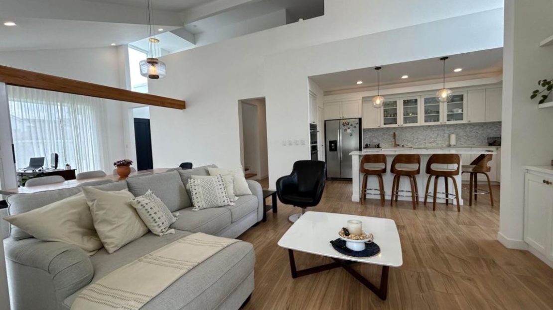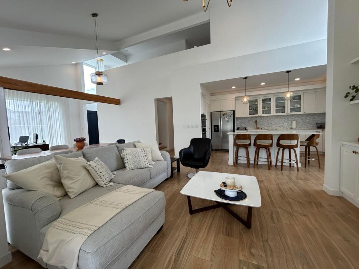 Sala y comedor con techos altos que maximizan la amplitud y elegancia.
