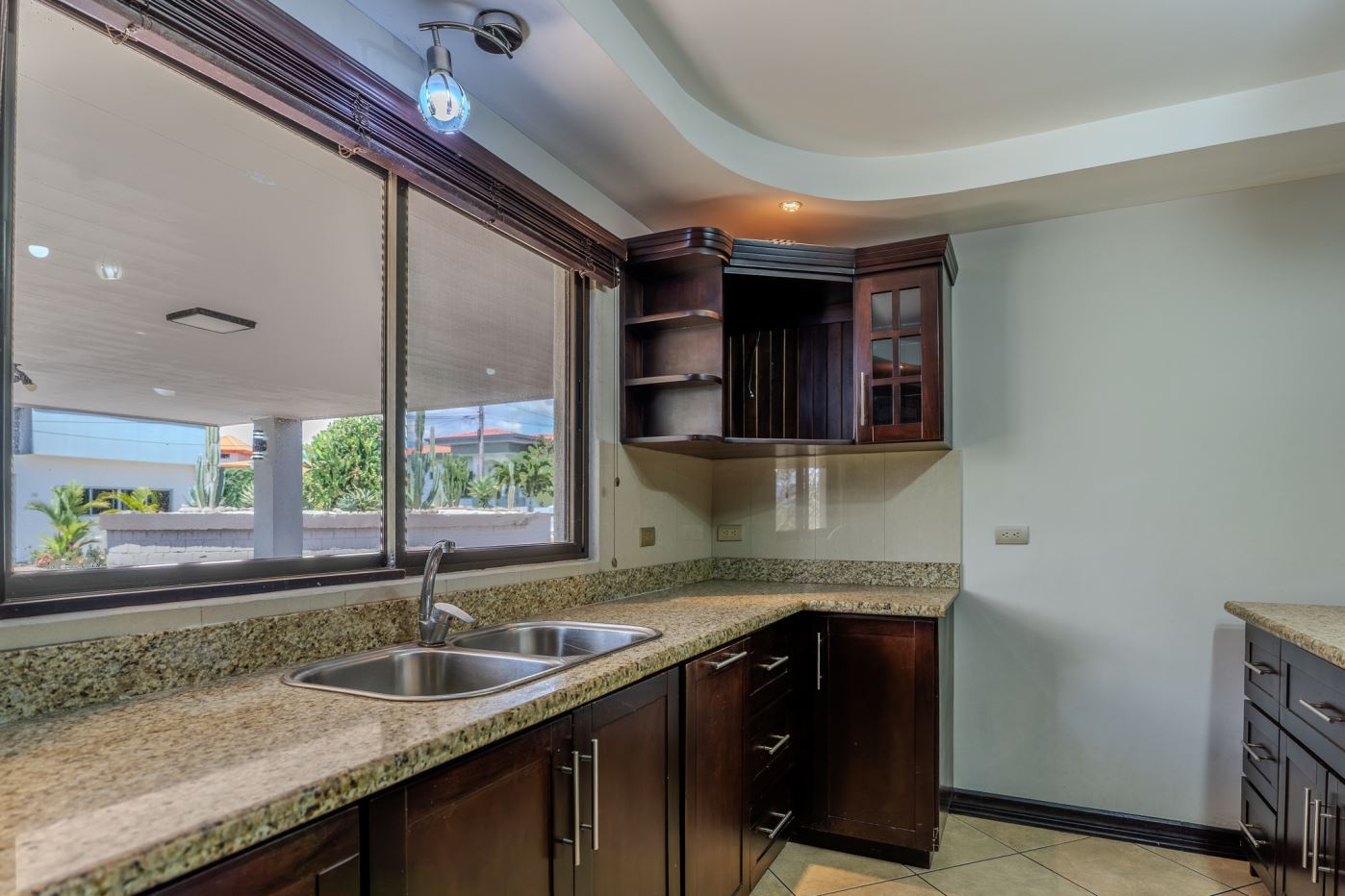 Los detalles en madera sólida elevan la calidez y elegancia del hogar: puertas, marcos y gabinetes de cocina elaborados en madera sólida que reflejan calidad y durabilidad. La propiedad incluye cortinas, unidades de aire acondicionado en cada habitación, extractor de grasa en la cocina y una amplia área de lavandería que aporta practicidad al día a día.