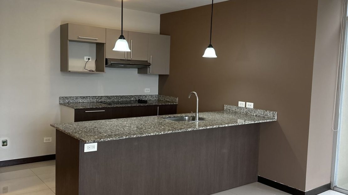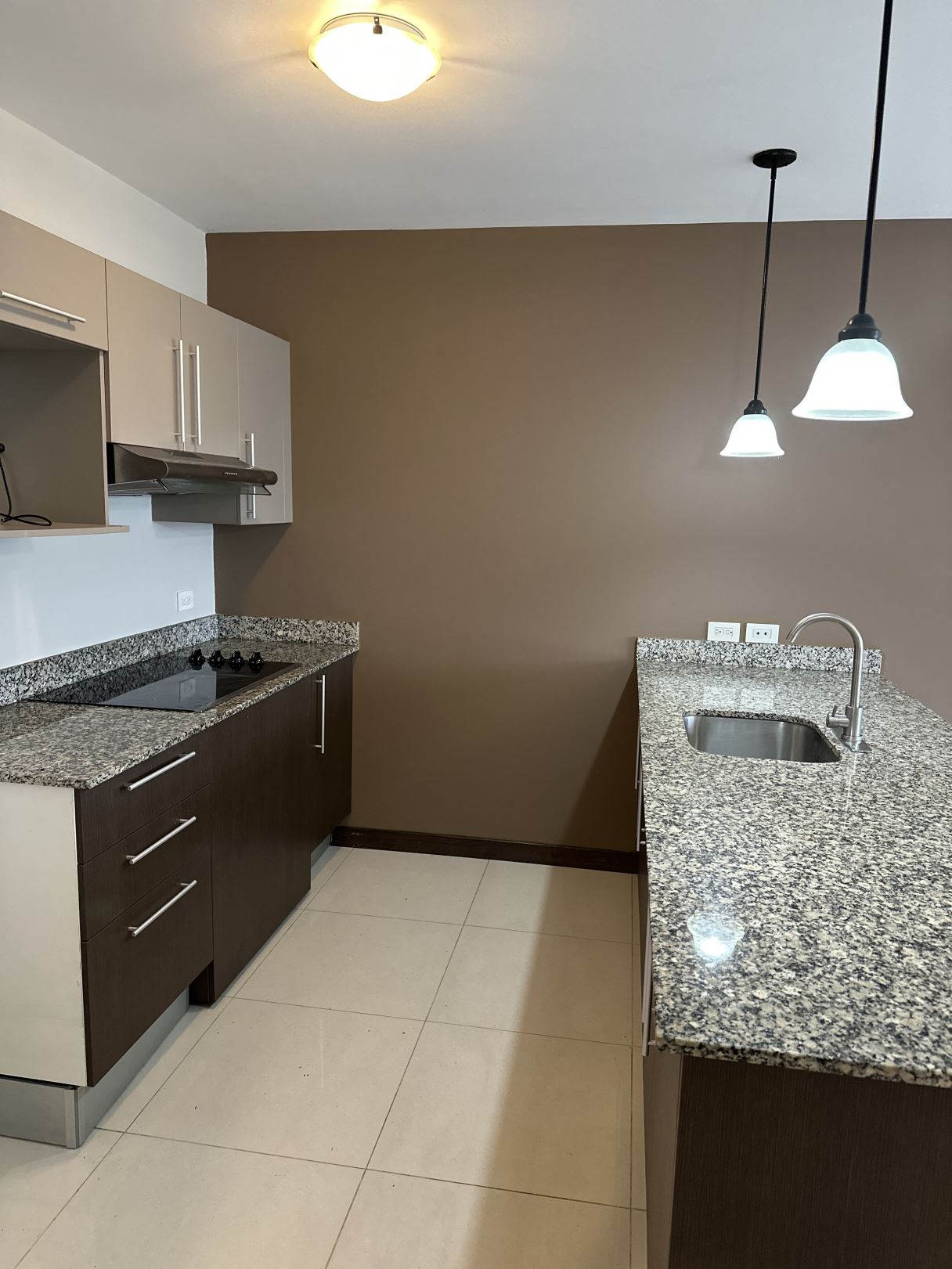 La cocina de concepto abierto está pensada para la vida diaria: cuenta con una amplia isla, generosas superficies de trabajo y gabinetes contemporáneos. Los electrodomésticos de acero inoxidable y la iluminación colgante aportan un toque actual que complementa su funcionalidad.