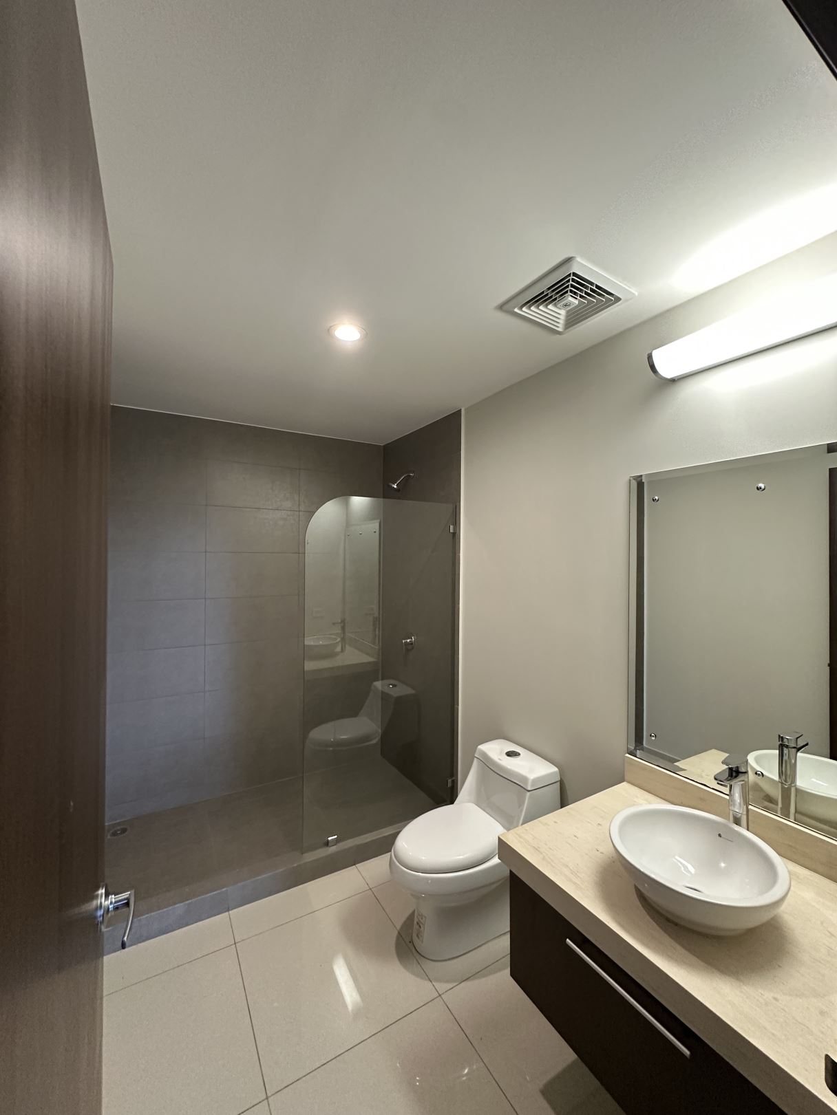 Ambos dormitorios ofrecen un ambiente cómodo y privado. Los dos baños cuentan con acabados modernos y frescos, brindando un espacio práctico y agradable. Además, la propiedad incluye dos espacios de estacionamiento, añadiendo un nivel extra de comodidad.