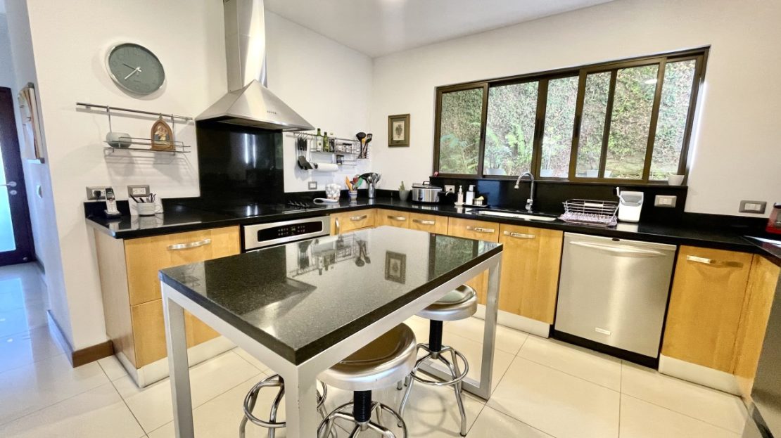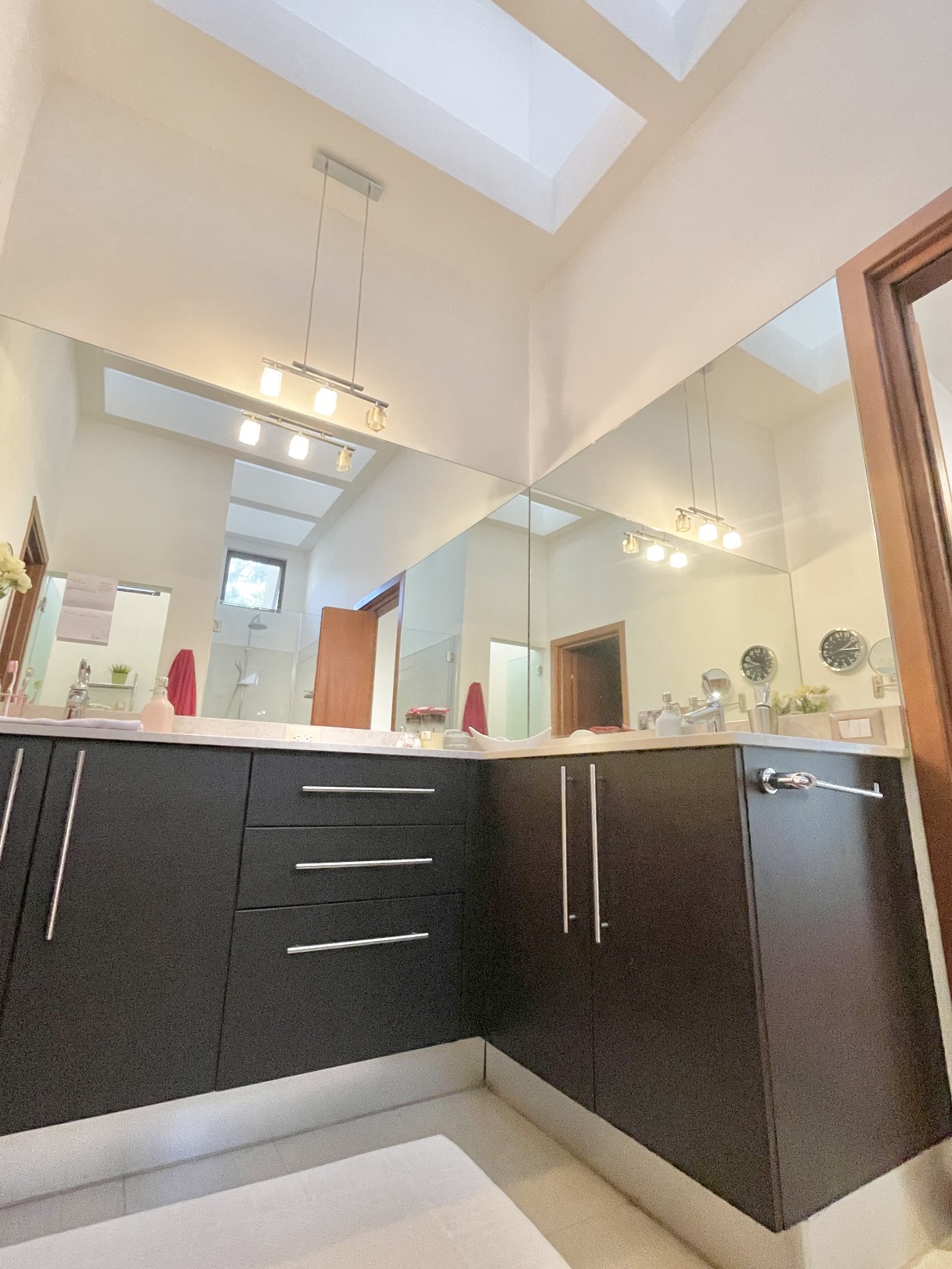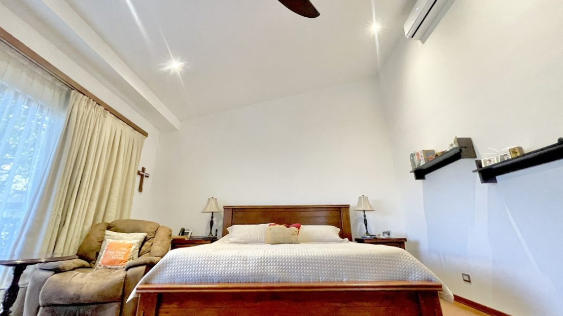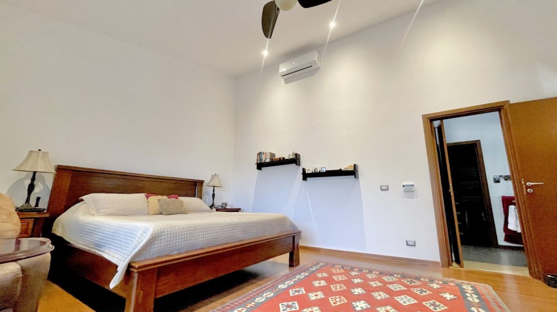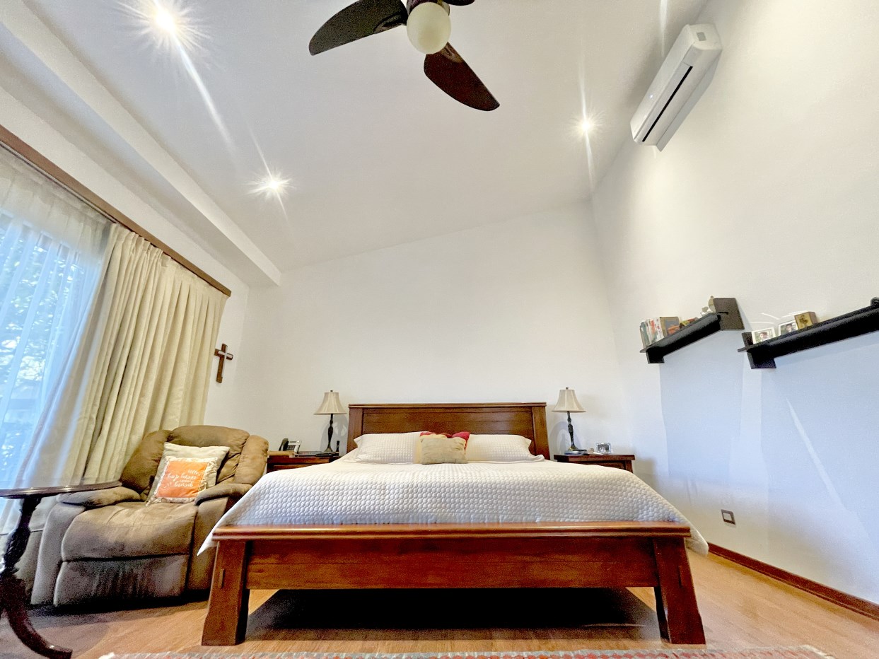 – 4 bedrooms with closet, black outs and air conditioning.- Master bedroom with private bath and large walk in closet- Spacious living and dining room with view to the trees- Large kitchen with island, several storage cabinets and cupboards- Terrace with bbq area and garden- Maid’s quarters with bathroom- Laundry room with laundry tower and sink. Storage furniture- 4 warehouses and closets throughout the house for storage.- Garage for 4 cars- Gas distribution circuit system- Automatic irrigation system- Water storage tank