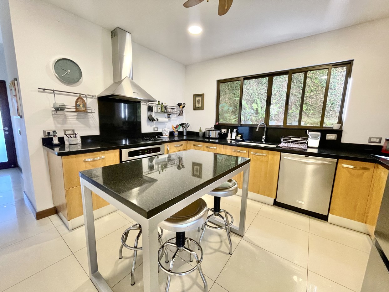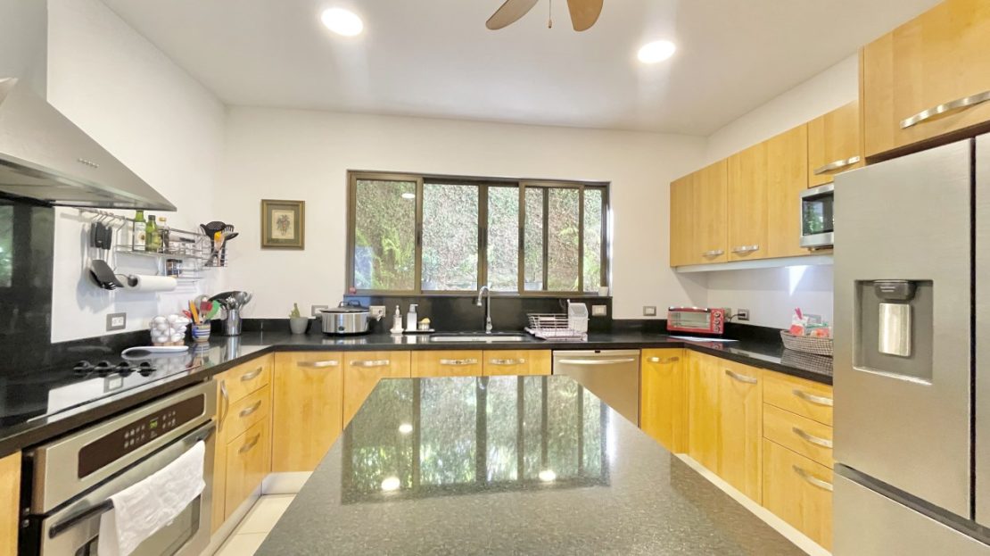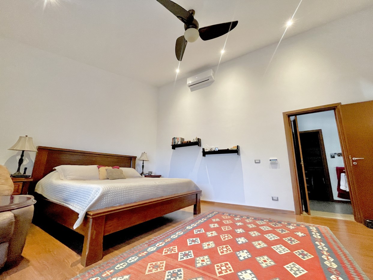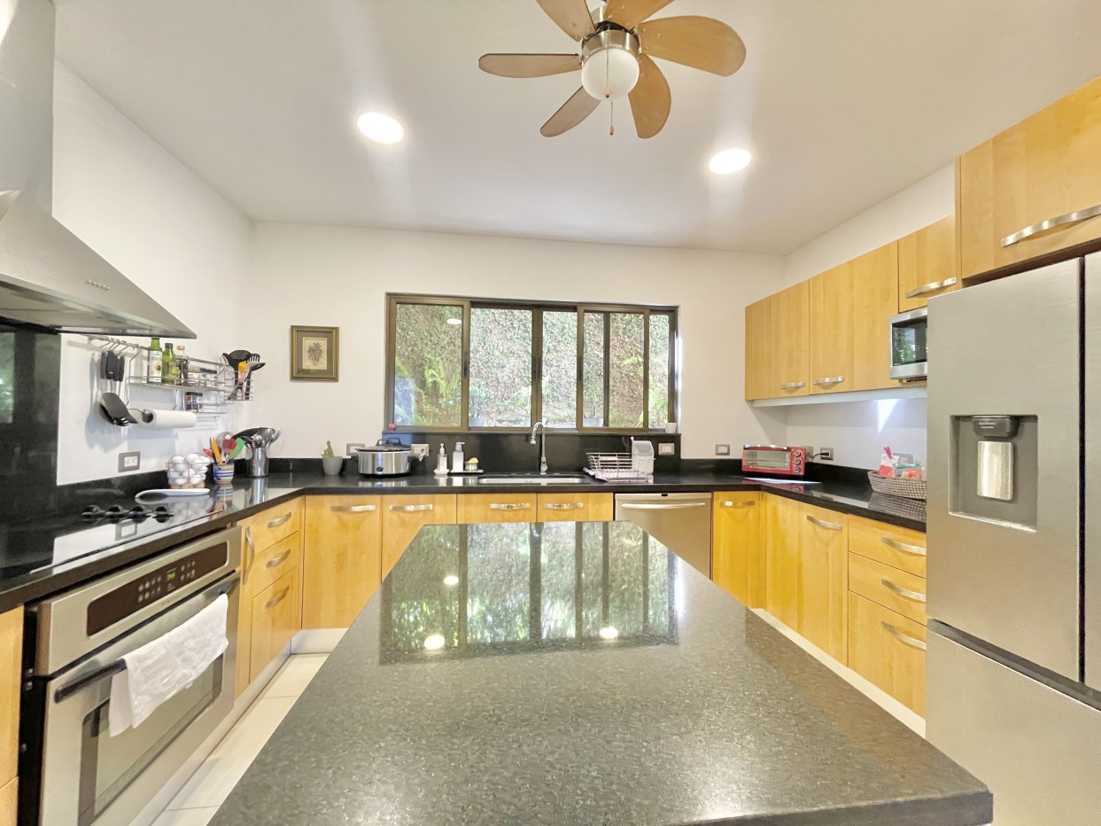 – 4 bedrooms with closet, black outs and air conditioning.- Master bedroom with private bath and large walk in closet- Spacious living and dining room with view to the trees- Large kitchen with island, several storage cabinets and cupboards- Terrace with bbq area and garden- Maid’s quarters with bathroom- Laundry room with laundry tower and sink. Storage furniture- 4 warehouses and closets throughout the house for storage.- Garage for 4 cars- Gas distribution circuit system- Automatic irrigation system- Water storage tank