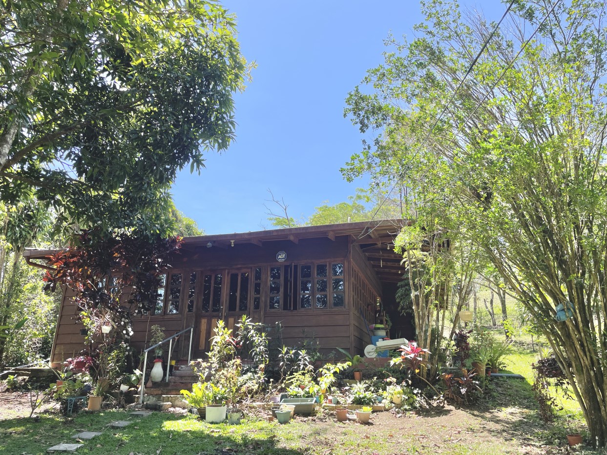 Rodeada de naturaleza y armonía. Un lugar mágico para vivir. Sobre la calle de la Universidad para la Paz. Cerca de la Reserva, cataratas y destinos turísticos. Ideal como inversión o bien para vivir felizmente. La casa hecha de pura madera teca, y sus detalles son artesanías con elementos de alta calidad. Vista espectacular a las montañas.