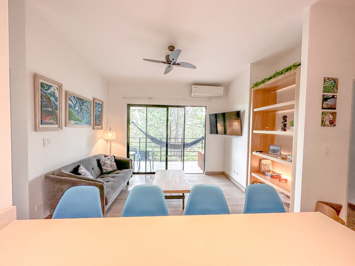 Moderno y con mucha iluminación natural, con una vista que da a la copa de los árboles que brinda frescura y tranquilidad al apartamento. Un condominio de tan solo 56 unidades, con áreas sociales excepcionales y verdes. Esta unidad está en el quinto y último piso, brindando privacidad y una vista mucho mas hermosa. En condominio Lua Living