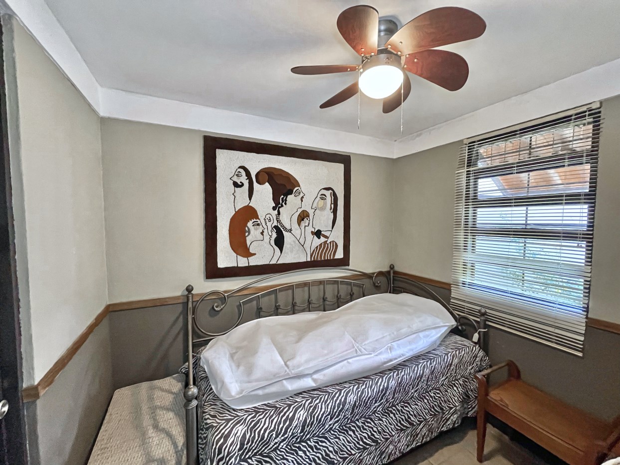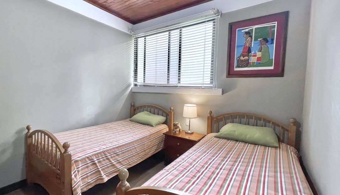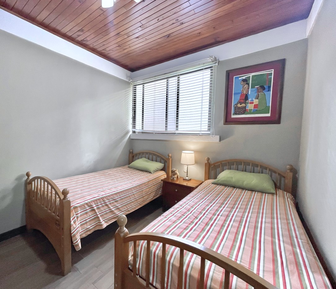 The two secondary bedrooms are characterized by ceiling panels of Laurel wood. The bedrooms share an independent full bathroom. A maid’s quarters with a full bathroom can be utilized as a fourth bedroom.