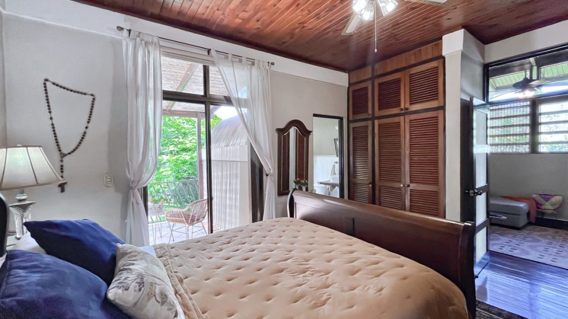The Master bedroom boasts Laurel wood flooring, a TV lounge room, an en-suite bathroom with solid wood countertops, and a balcony. Open the doors, then lounge on the covered terrace with your favorite beverage listening to twittering birds while gazing at the landscapes of mountains and nature. A perfect escape for tranquility.