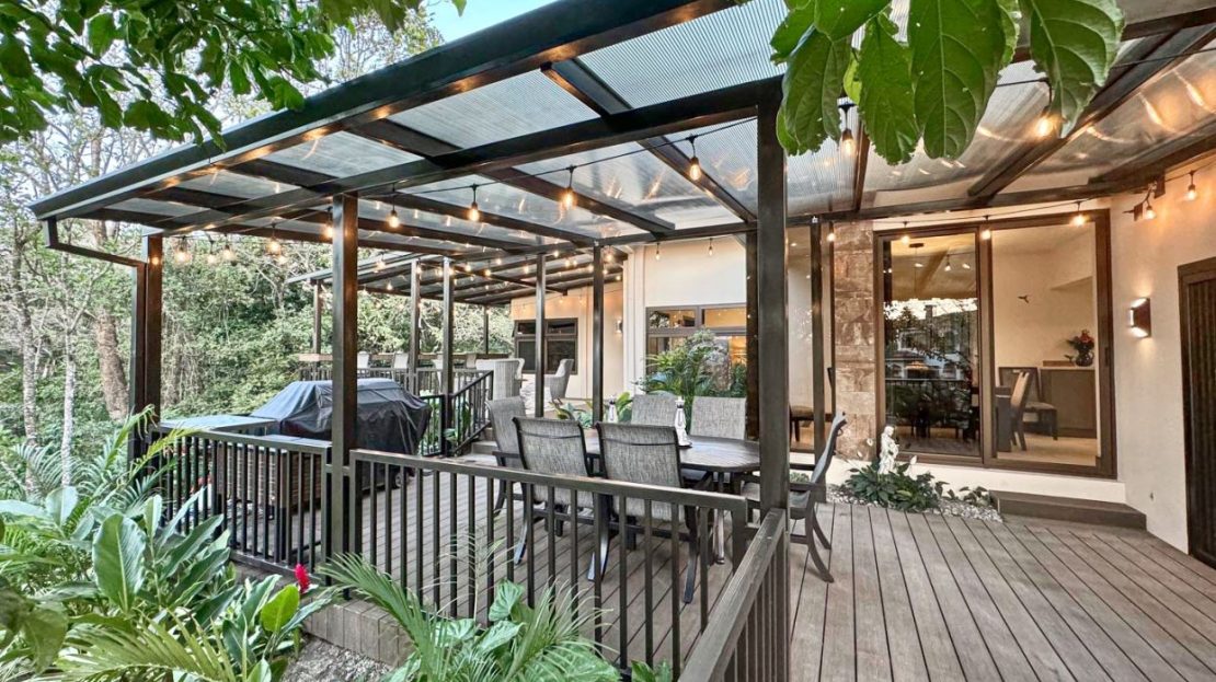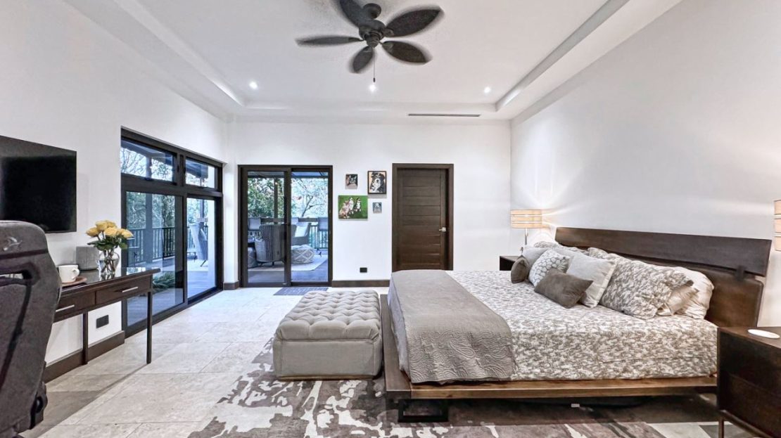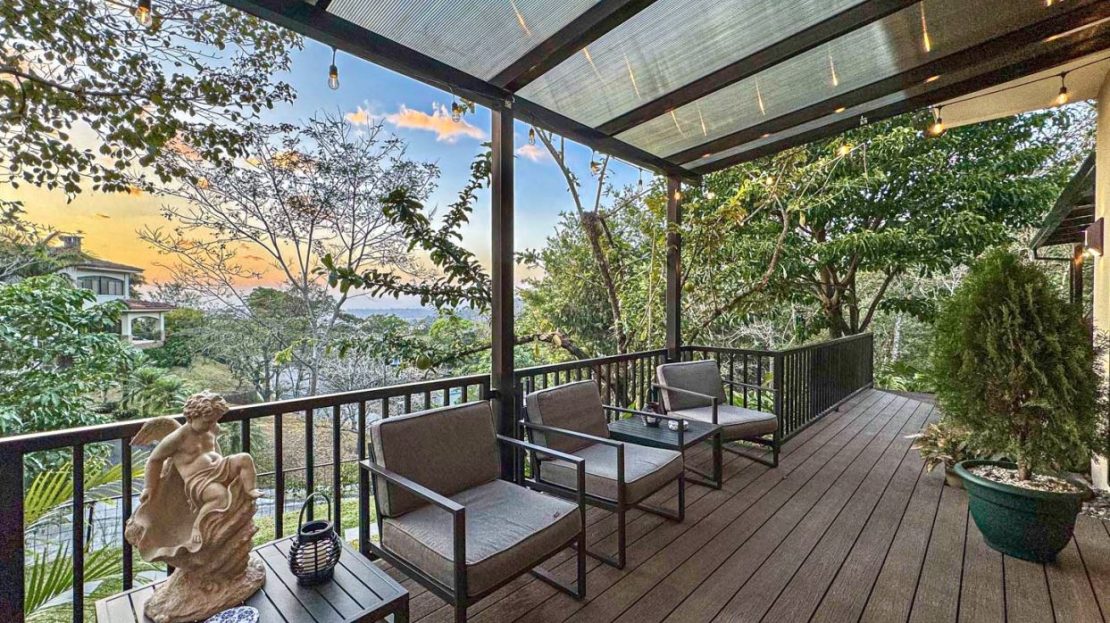 Perched in the hills of Cerro Colón, Casa Sunset Bali Ciudad Colón home for sale is a one level tropical modern residence where architecture, nature, and culture exist in perfect harmony. From the moment you arrive, a sense of calm settles in—fresh mountain breezes flow through the home, birdsong drifts from the surrounding trees, and sweeping views open across the Central Valley and distant mountain ranges. Only a few minutes away from the Towncenter of Ciudad Colon where you can have access to cafes, restaurants, a farmers market, parks, both grocery and boutique stores, and much more.