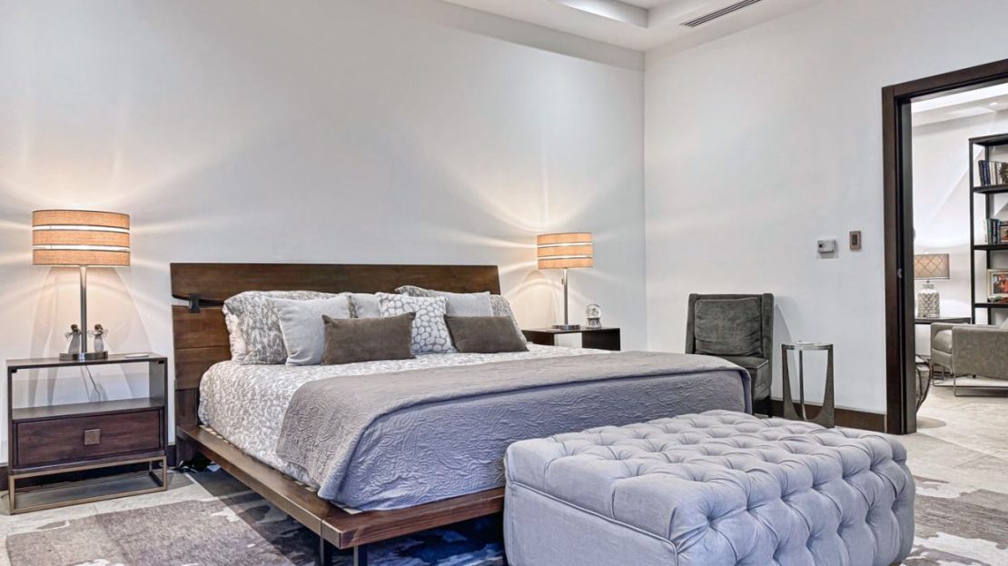 The fourth bedroom is located on the second level with elevator access and features beautiful valley views. The room can also be used as a secluded office space.