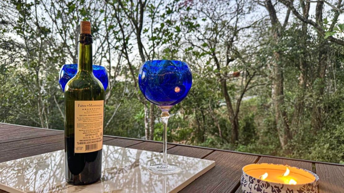 The outdoor terrace is generously sized, offering multiple areas for lounging by the water fountain, enjoying nature, taking in views of the gardens, mountains, and valley, or relaxing by the fire pit with your favorite beverage.