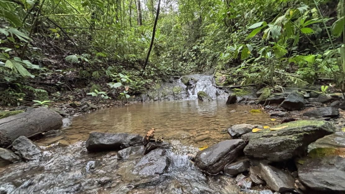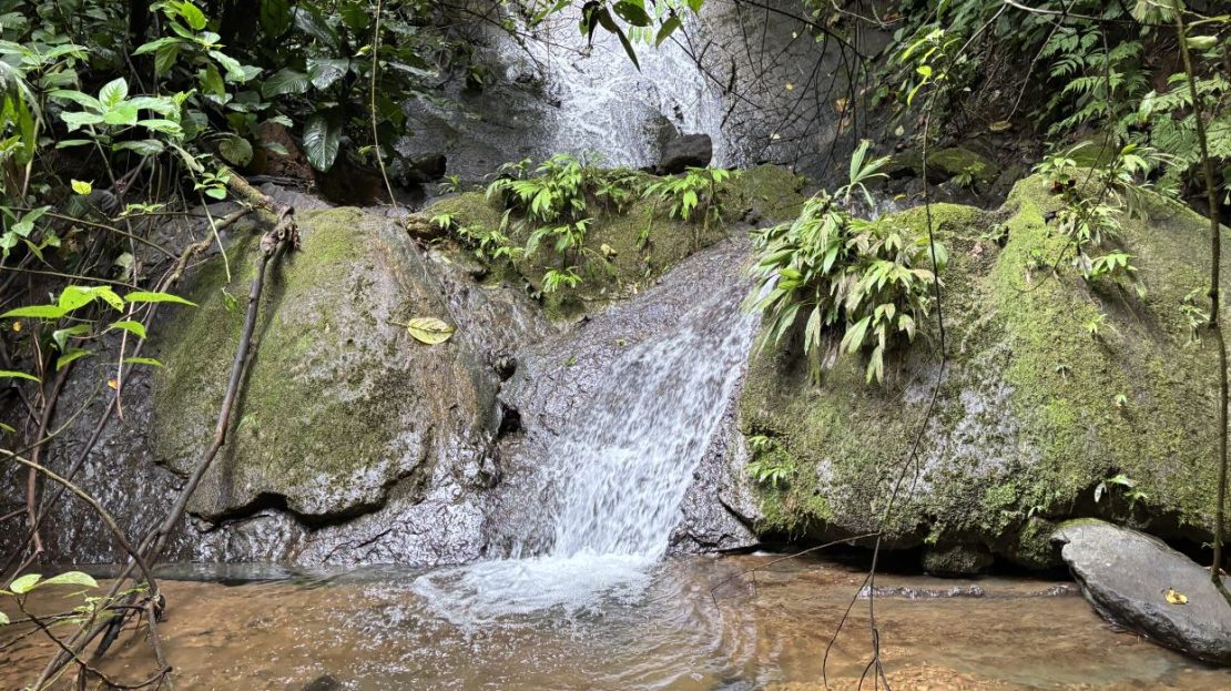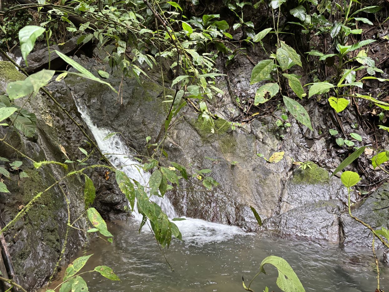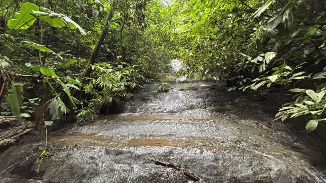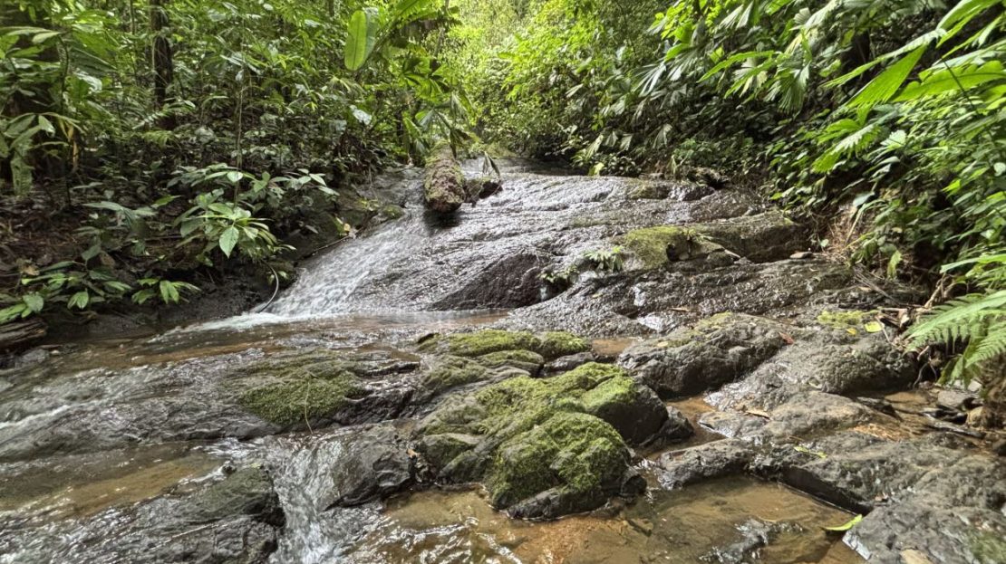 Una pequeña cascada escondida en el bosque invita a meditaciones matutinas, baños refrescantes y caminatas vespertinas bajo la sombra de árboles imponentes. Y aquí, la vida silvestre no es un espectáculo ocasional—es parte del paisaje cotidiano. Mariposas morfo azules moviéndose entre los rayos del sol, monos jugando en el dosel, iguanas calentándose sobre las rocas, y el destello rojo de las lapas cuando el cielo se abre después de la lluvia.