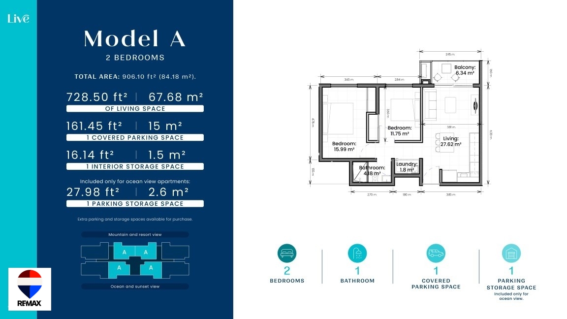 With 84.33 square meters of contemporary design, this residence perfectly balances comfort, style, and panoramic views. From the 10th-floor balcony, enjoy serene mountain vistas and a relaxing overlook of the pool area, creating the ideal tropical retreat.