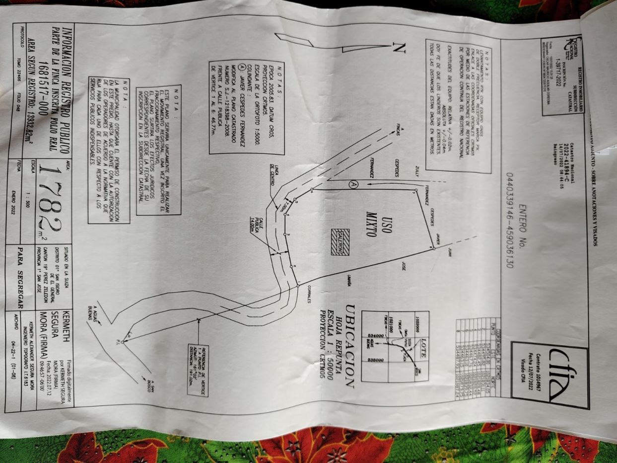 For sale: a one-of-a-kind lot in San Juan Bosco, surrounded by nature and breathtaking sunsets that paint the sky with unforgettable colors. With 1782 m², a corral, natural water source, and dual road access, this corner property with slope offers the perfect setting to build an elevated home, enjoy complete privacy, and live among coffee fields, mountains, and fresh mountain air.