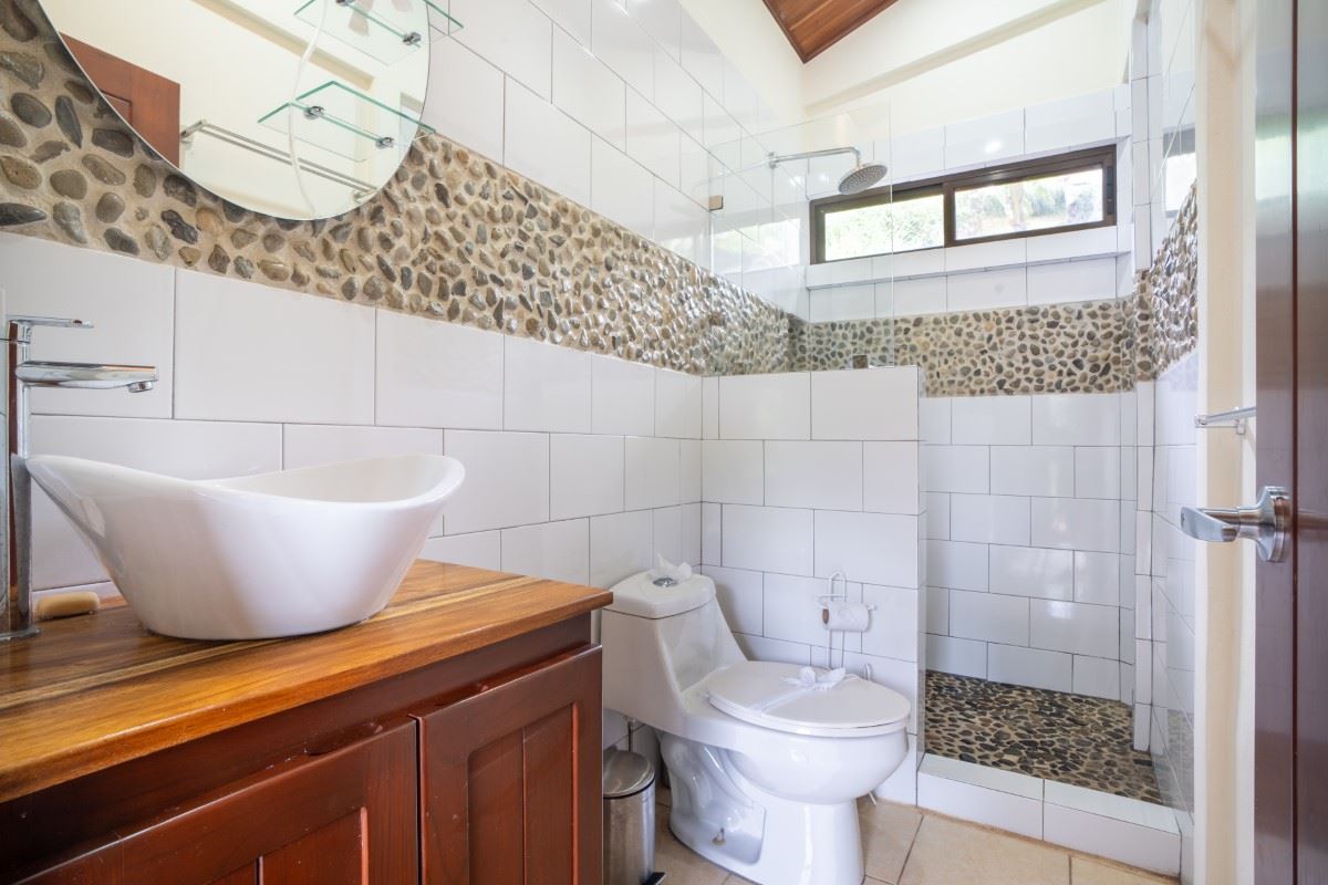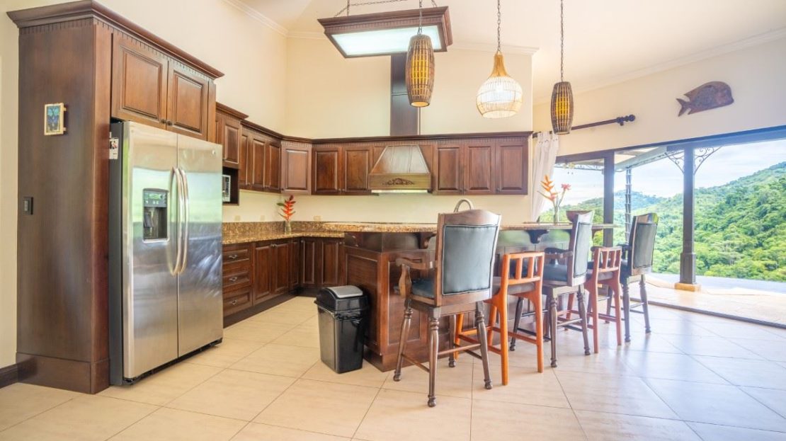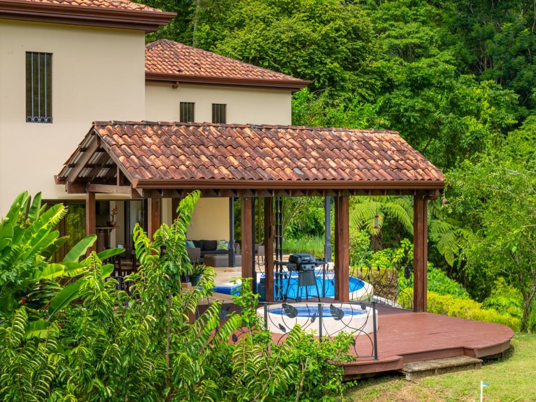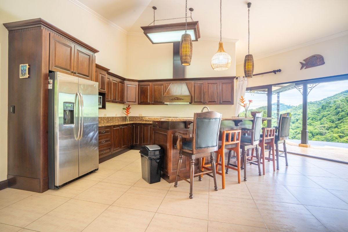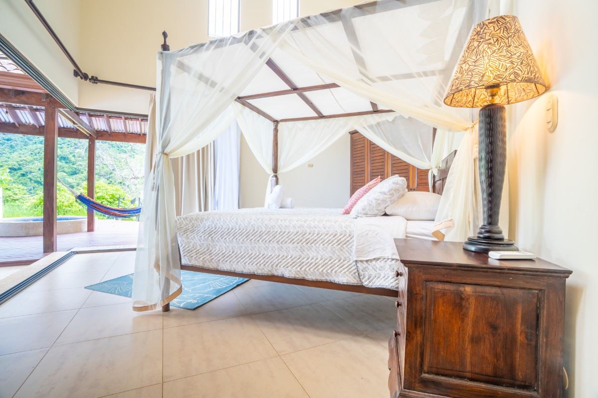 THE MAIN HOUSE The main house is an architectural masterpiece of quality design and a true ‘castle in the jungle’ (just look at the aerial photos)! Made of solid concrete construction and incorporating high vaulted ceilings, the single level luxury home holds 4 private bedrooms – each with king canopy bed and en-suite full bathroom plus 1 shared bath and a large central kitchen / dining / lounge area which opens up into the covered patio, attached ranchito and million-dollar views. And here is where you find the refreshing infinity pool, jacuzzi, BBQ, and outdoor dining and lounge areas. The house takes full advantage of its magnificent location, with every room having a unique spectacular view. The waterfall can be seen and heard from the house. Each room is air-conditioned and is provided with outdoor access so that the splendid natural views are just a few steps away. An extra-large 2.5-car drive-through garage contains a large bodega, so storage will never be a problem. The home is a successful 5-star Airbnb property – its excellent income-generating history can be provided upon completion of an NDA.