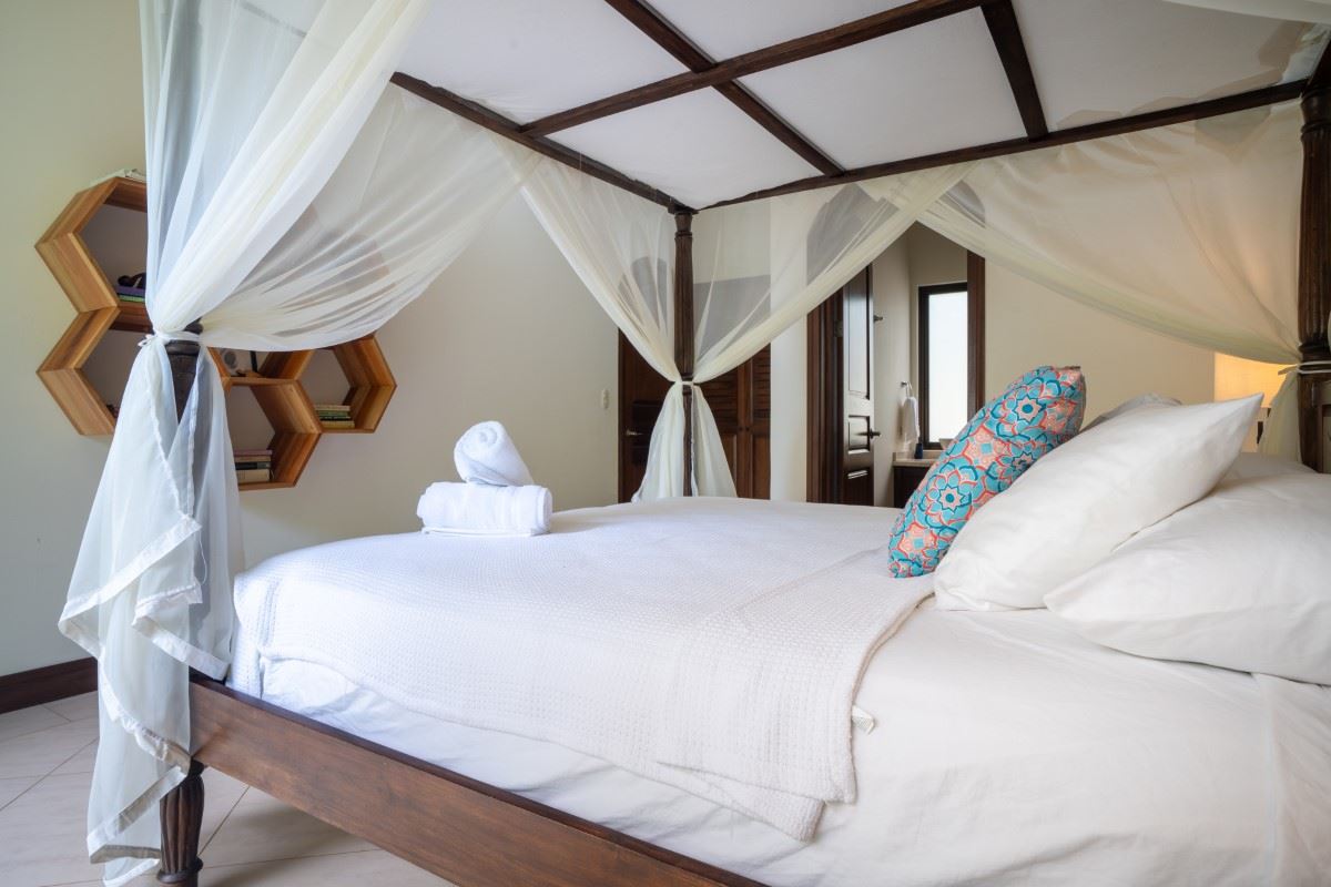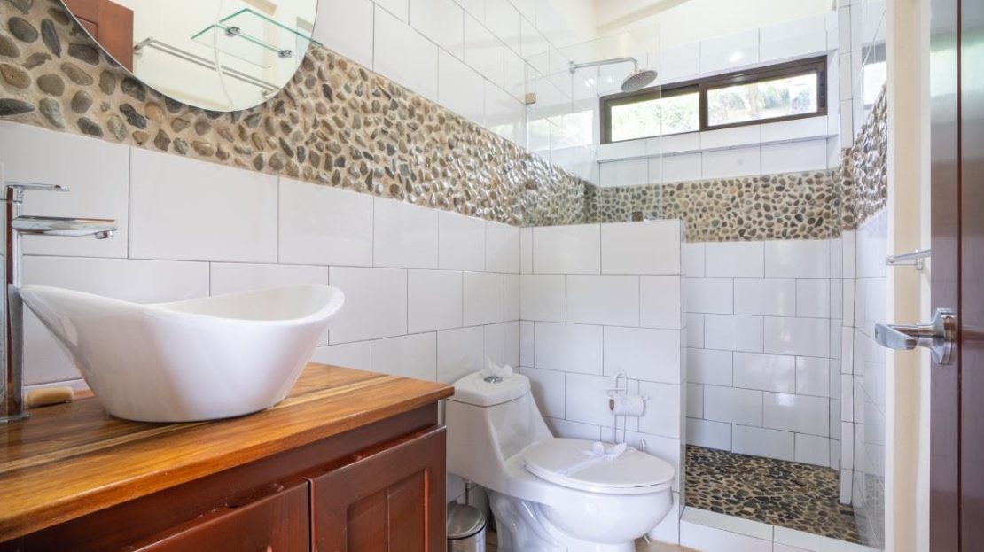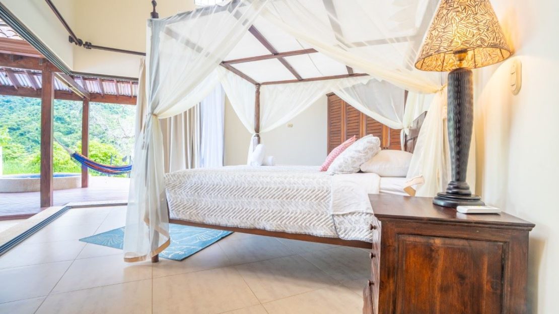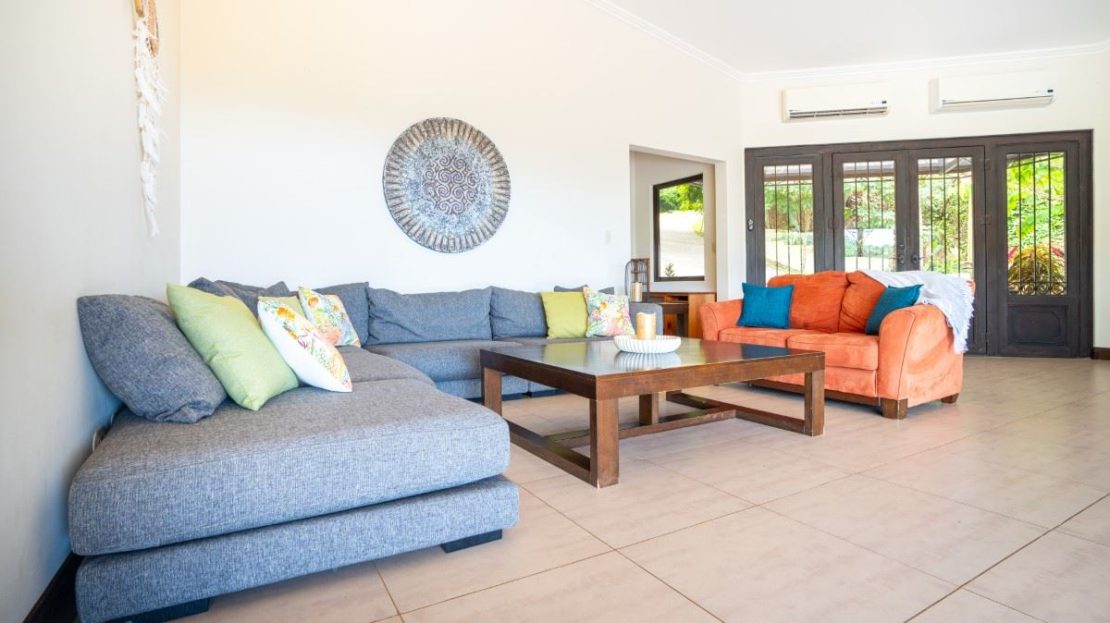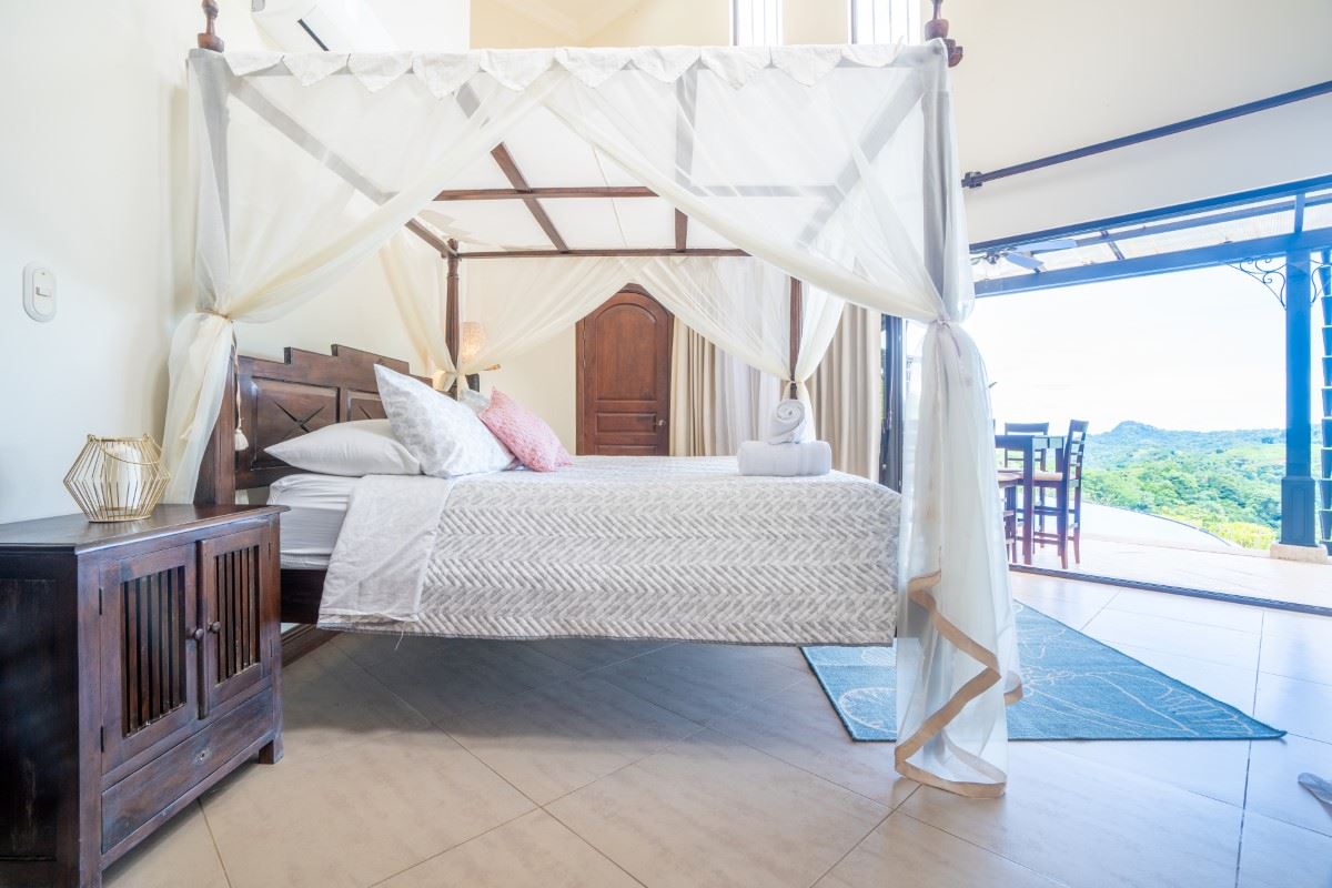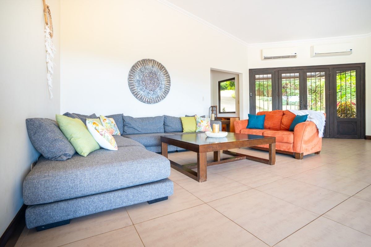 THE MAIN HOUSE The main house is an architectural masterpiece of quality design and a true ‘castle in the jungle’ (just look at the aerial photos)! Made of solid concrete construction and incorporating high vaulted ceilings, the single level luxury home holds 4 private bedrooms – each with king canopy bed and en-suite full bathroom plus 1 shared bath and a large central kitchen / dining / lounge area which opens up into the covered patio, attached ranchito and million-dollar views. And here is where you find the refreshing infinity pool, jacuzzi, BBQ, and outdoor dining and lounge areas. The house takes full advantage of its magnificent location, with every room having a unique spectacular view. The waterfall can be seen and heard from the house. Each room is air-conditioned and is provided with outdoor access so that the splendid natural views are just a few steps away. An extra-large 2.5-car drive-through garage contains a large bodega, so storage will never be a problem. The home is a successful 5-star Airbnb property – its excellent income-generating history can be provided upon completion of an NDA.