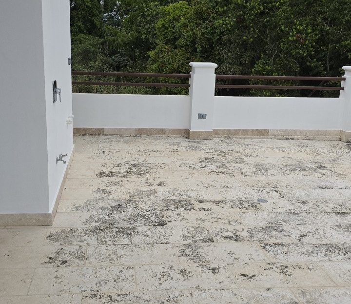 – **High-End Finishes** – Custom cabinetry, travertine flooring throughout, and handcrafted woodwork adorning the **exposed exterior soffits**