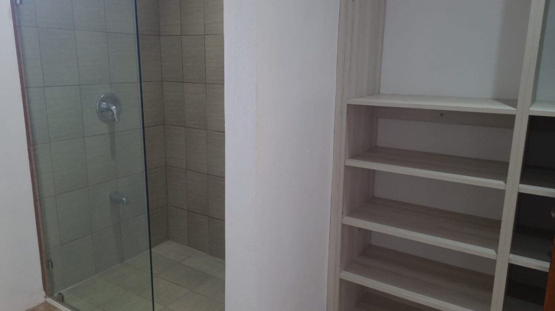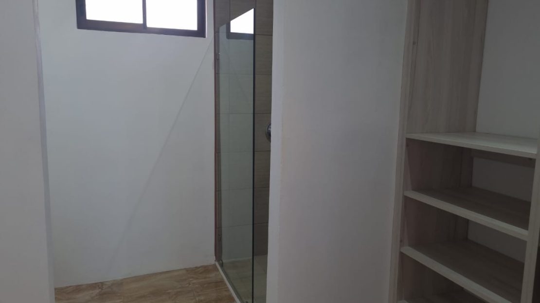 The house has three bedrooms and two full bathrooms, all of them comfortable, with ventilation and their respective shelves. They have A/C provision in the bedrooms and hot water provision for showers.