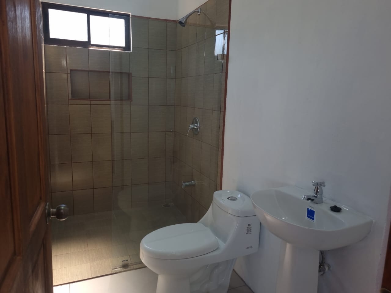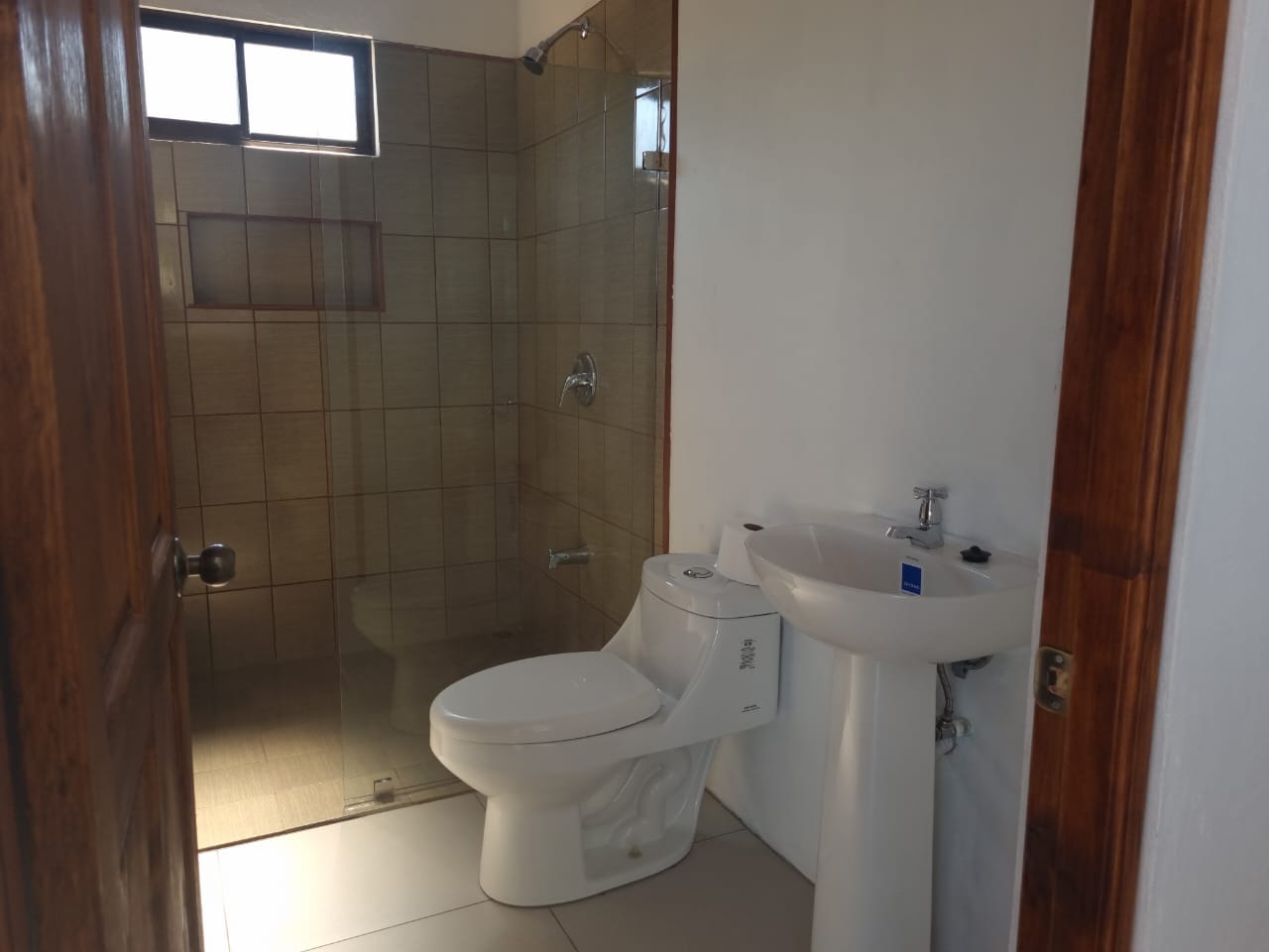 La casa cuenta con 3 dormitorios y dos baños completos, todos cómodos, con ventilación y su respectiva estantería. Tienen previstas de A/C en los dormitorios y prevista de agua caliente para las duchas.