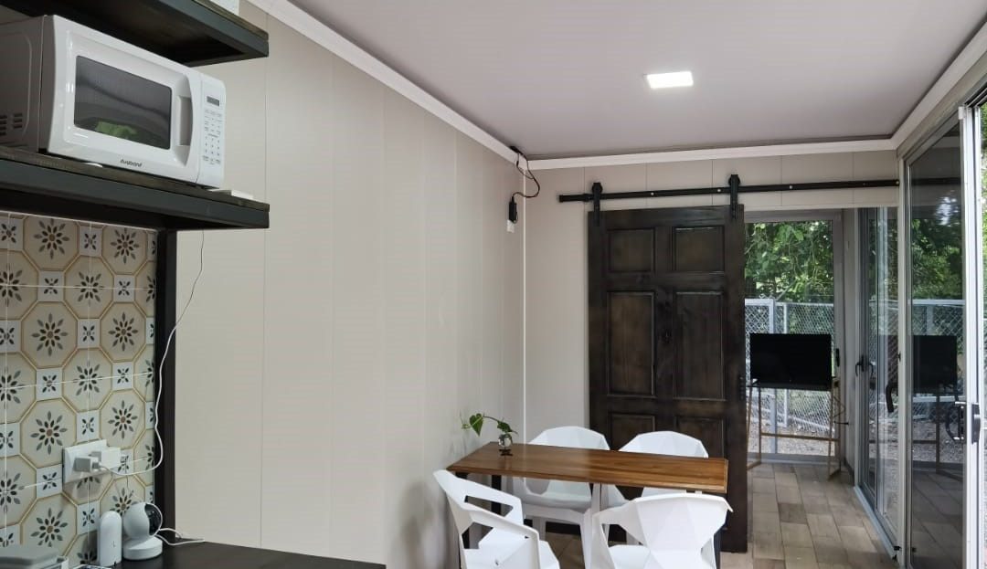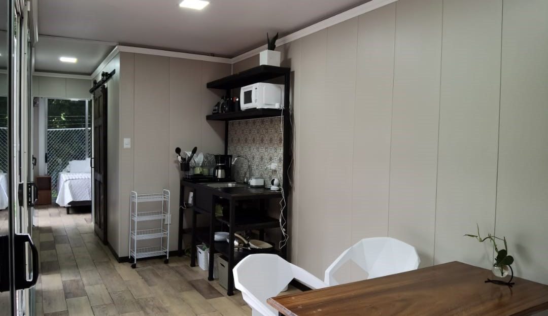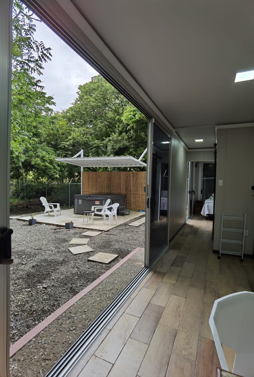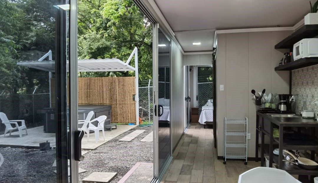 New modern-style home in small gated Atenas community located just 5 minutes from Atenas Center and a couple minutes from the new East-West highway 27. It’s the last lot in this community and would be the most private that back up to a natural setting adjacent a forest. There is plenty of parking area and rooms for gardens or added builds. The home features 2 bedrooms with amply open kitchen, dining and living area with a shared bathroom. Outside there is plenty of covered two terrace spaces, one is for a jacuzzi and bbq areas. The home has modern-style finishes and designs throughout with plenty of light. The property is all enclosed behind a perimeter