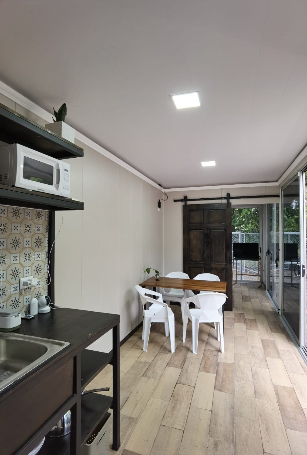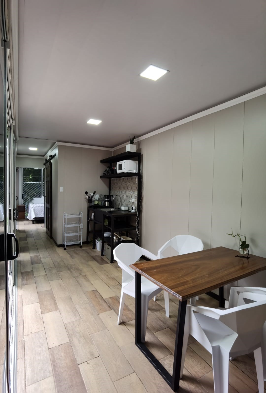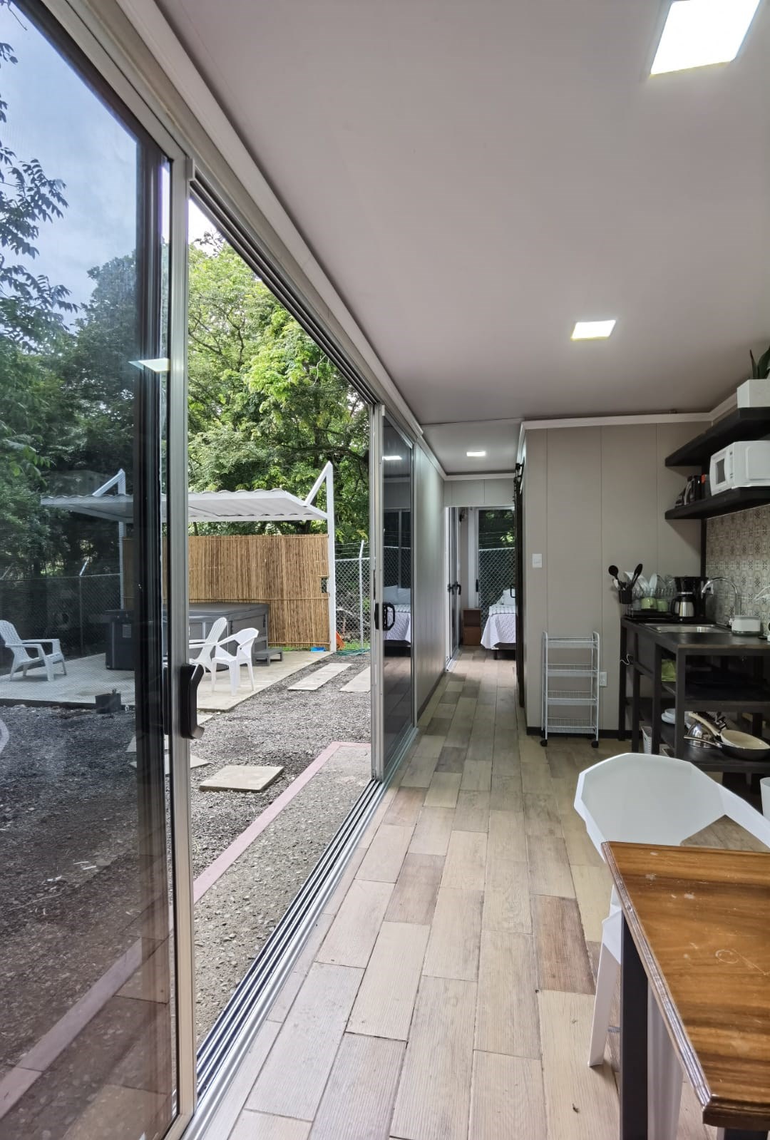 New modern-style home in small gated Atenas community located just 5 minutes from Atenas Center and a couple minutes from the new East-West highway 27. It’s the last lot in this community and would be the most private that back up to a natural setting adjacent a forest. There is plenty of parking area and rooms for gardens or added builds. The home features 2 bedrooms with amply open kitchen, dining and living area with a shared bathroom. Outside there is plenty of covered two terrace spaces, one is for a jacuzzi and bbq areas. The home has modern-style finishes and designs throughout with plenty of light. The property is all enclosed behind a perimeter