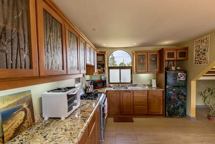 Interior Elegance: Designed for comfort with granite countertops, high arched windows offering stunning forest views, and adorned with original artwork.