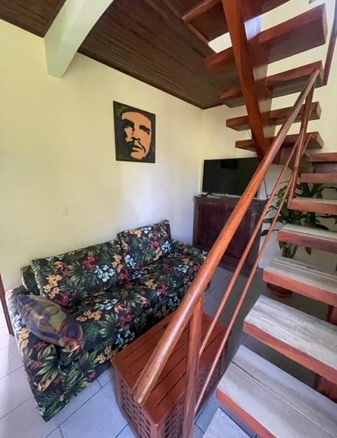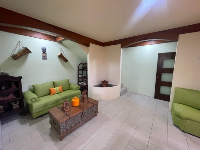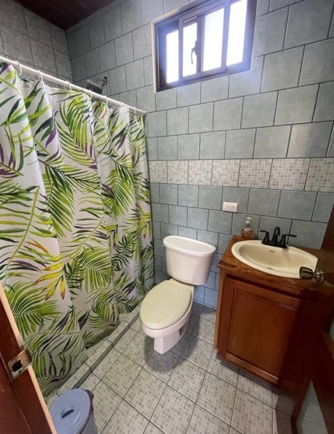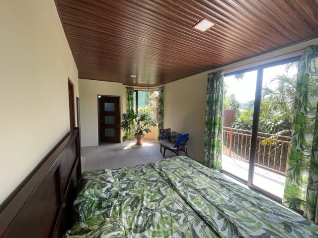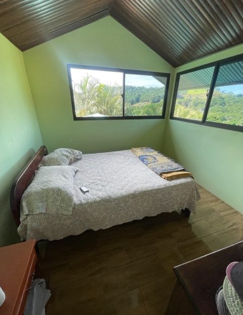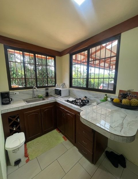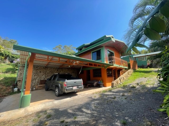 Newer home with unique designs and finishes can best described as a luxury cabin, located less than 10 minutes from Atenas Center in the cooler climates in the tranquil area of Barrio Jesus. This multilevel home is located on an 1/8 of an acre lot with added area for construction, gardening or plenty of parking. The first level has a galley kitchen, living and dining area with guest bathroom. The next level is a large main suite with master bedroom and bathroom adjacent to another small living area. On the top level is a small guest room. There is an added bathroom.