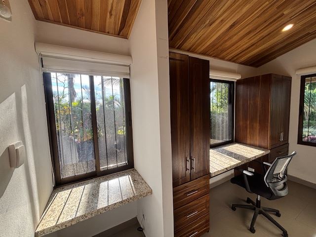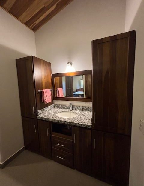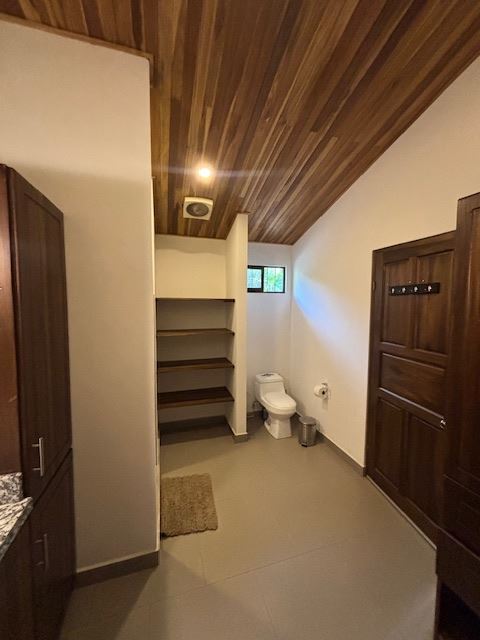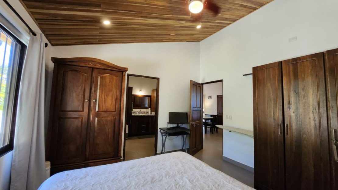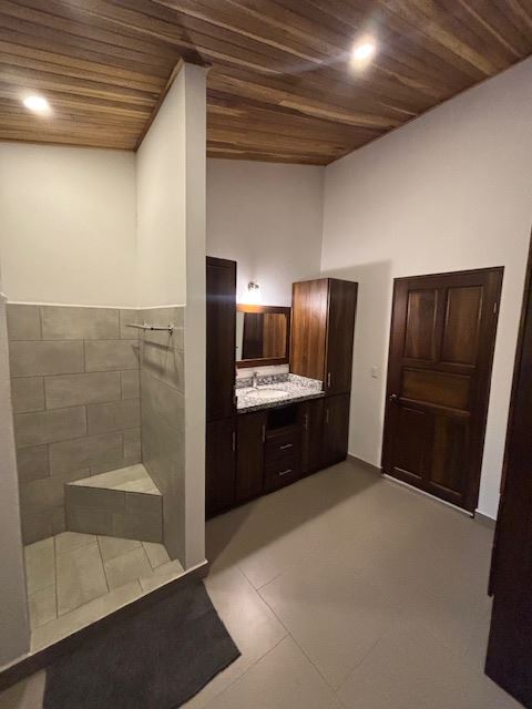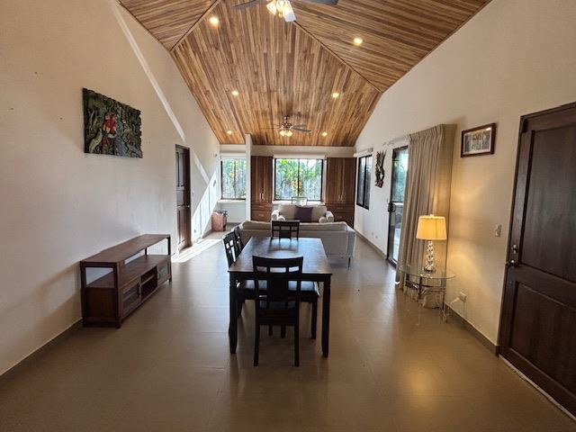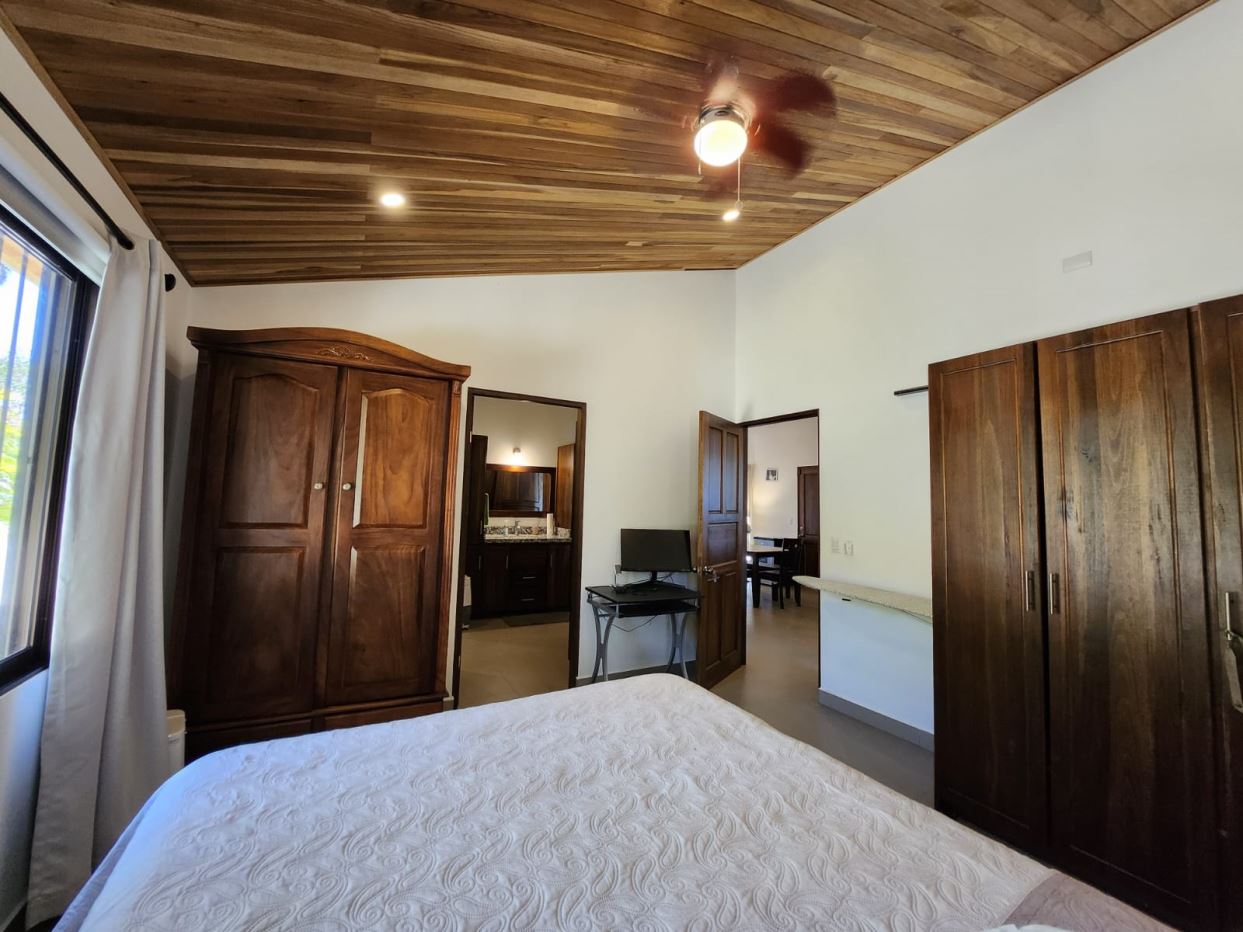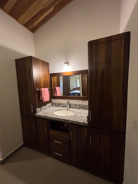 Nicely designed custom built home in a countryside setting features big mountain views with some city views in the Atenas-based gated community of Vistas Al Rio Grande, located 15 minutes from Atenas Center and just as far from the new highway 27. The furnished and turn-key home showcases an open floor plan with a large living and dining area with an adjacent custom-buit office area making it easy to work from home. The kitchen features like new appliances throughout. The formal entry leads to a guest bedroom and a jack and jill guest bathroom that leads to the second guest room. Towards the opposite end of the home one finds an ample master bedroom and bathroom suit with plenty of closet areas. There is custom woodwork throughout the ample kitchen, bathrooms, wooden doors and the tall artesenal wood worked ceilings.