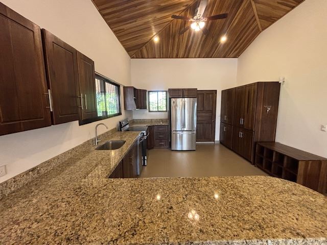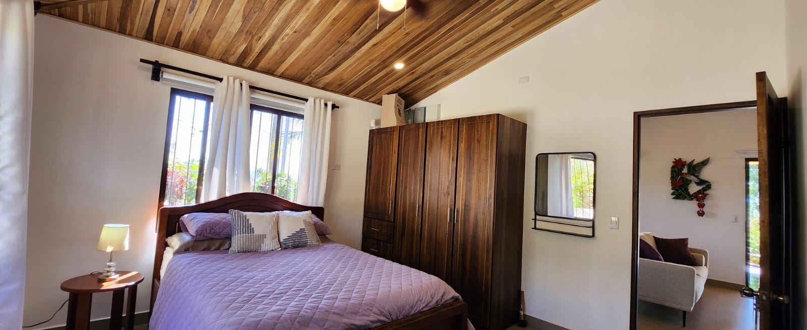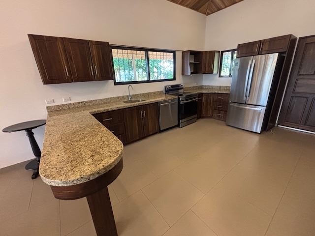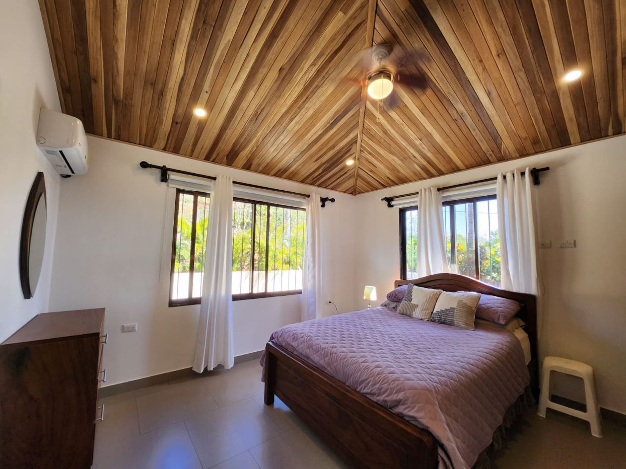Casa de diseño elegante y construcción personalizada en un entorno rural con impresionantes vistas a las montañas y a la ciudad, ubicada en la comunidad privada de Vistas al Río Grande, en Atenas, a 15 minutos del centro de Atenas y a la misma distancia de la nueva carretera 27. La casa, amueblada y lista para entrar a vivir, presenta un diseño abierto con una amplia sala de estar y comedor, y una oficina adyacente, hecha a medida, que facilita el teletrabajo. La cocina cuenta con electrodomésticos nuevos. La entrada formal conduce a un dormitorio de invitados y a un baño completo que conecta con el segundo dormitorio. En el extremo opuesto de la casa se encuentra un amplio dormitorio principal con baño en suite y amplios armarios. La cocina, los baños, las puertas de madera y los altos techos de madera artesanal cuentan con carpintería personalizada.