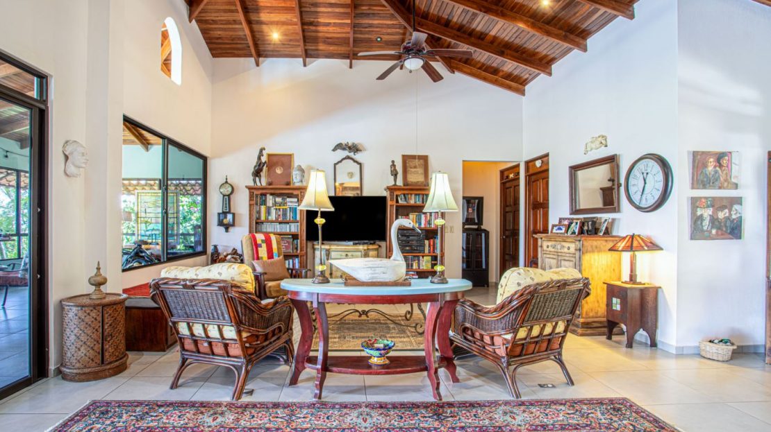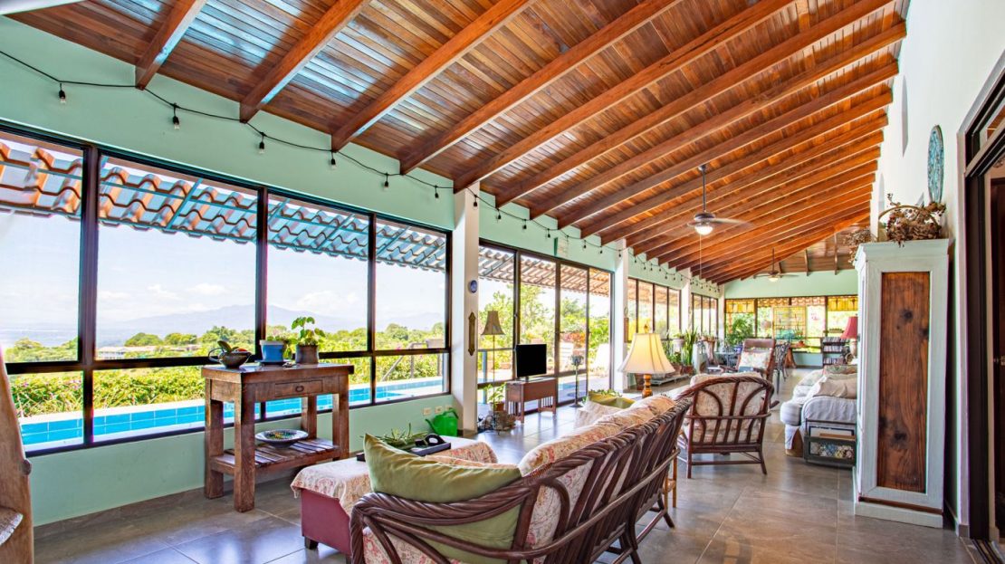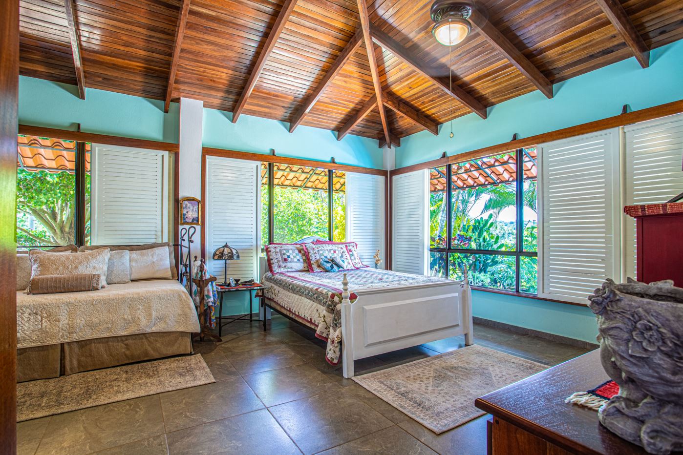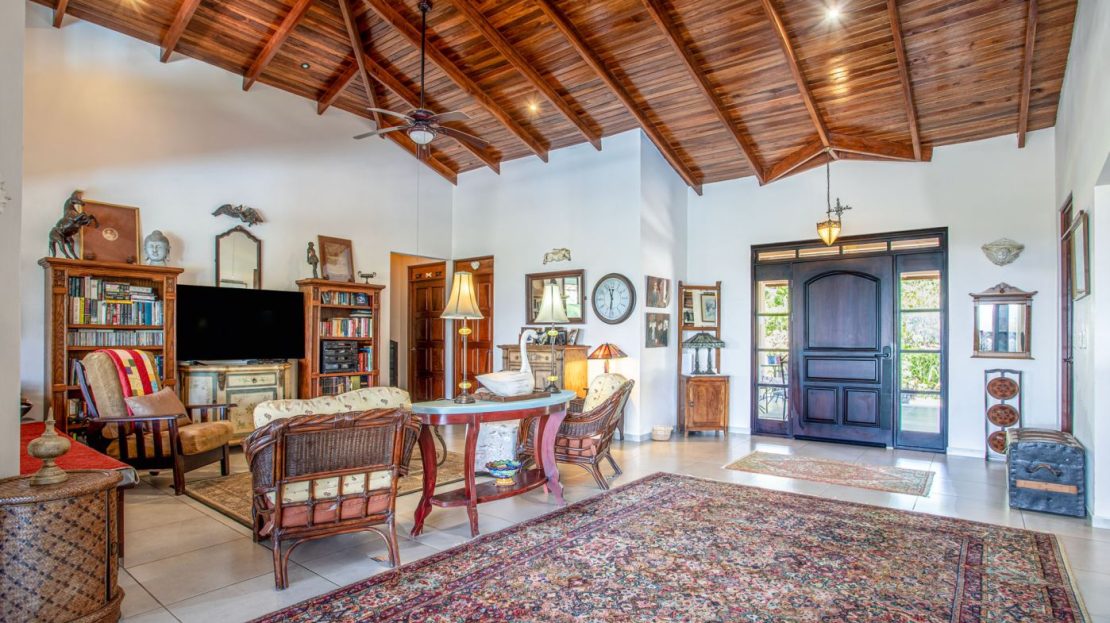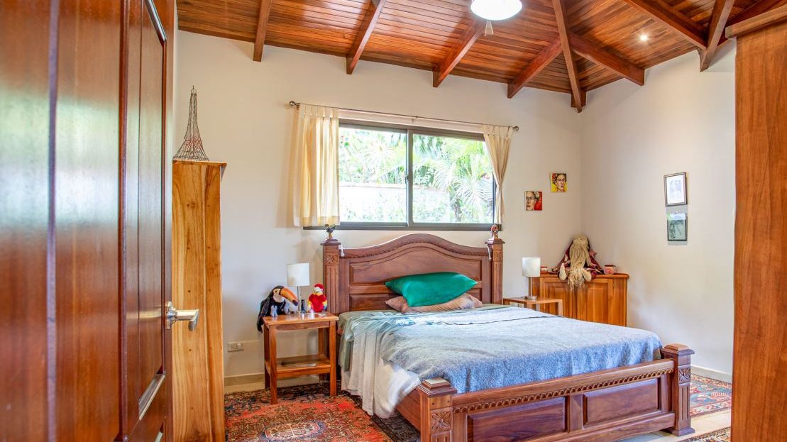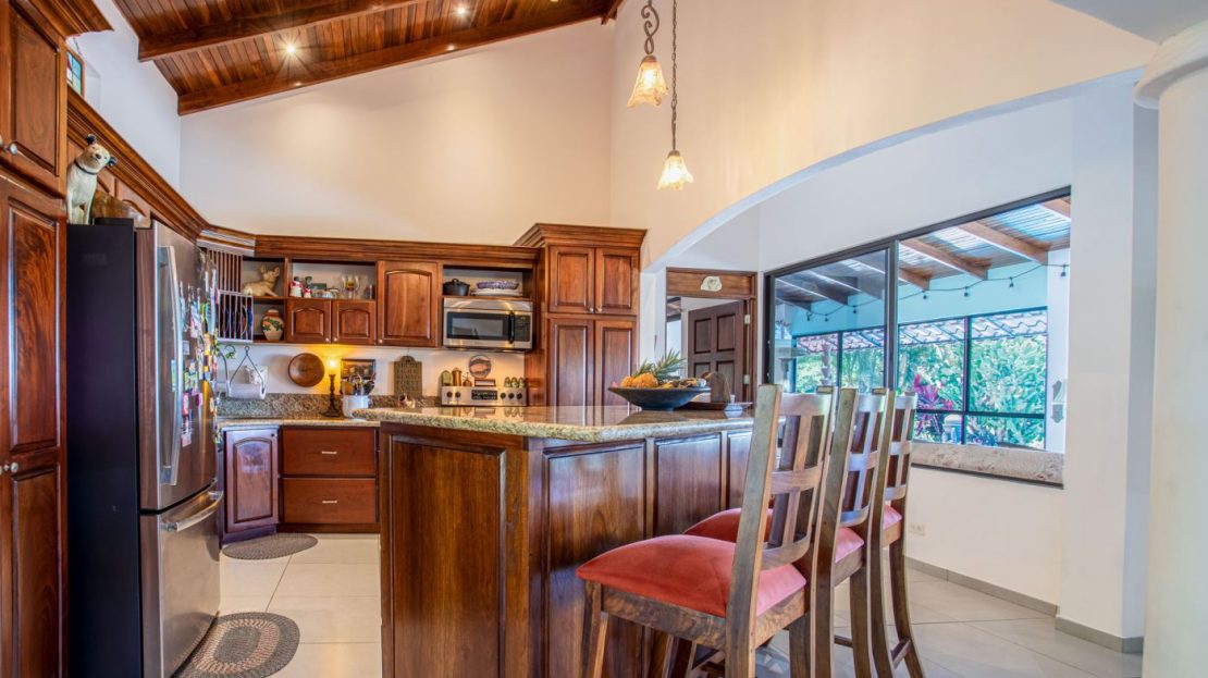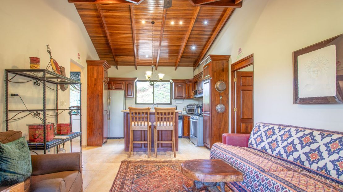 The main home features a large open floor plan with an ample kitchen ideal for chefs with plenty of room, an adjacent dining and spacious living room. This leads way to an extra large enclosed sun room perfect for those that want to enjoy the inside-outside feel of Atenas’ best climate. The home is finished with magestic artsenal woodwork throughout with wooden ceilings and beautiful craftsmanship in the kitchen, bathrooms and elsewhere. There is an enclosed garage. On the view side of the main home is a large inviting sun deck and nice size pool area.