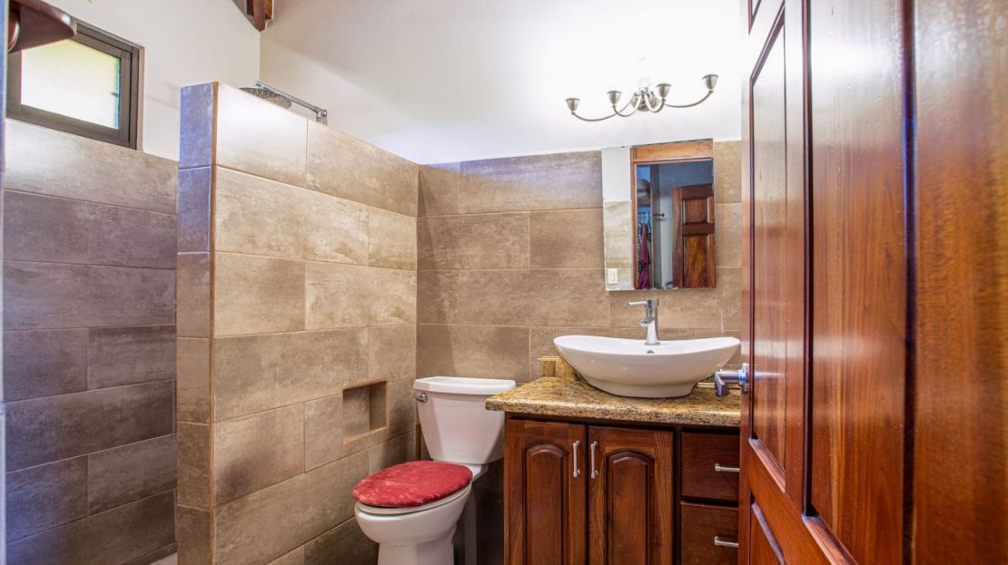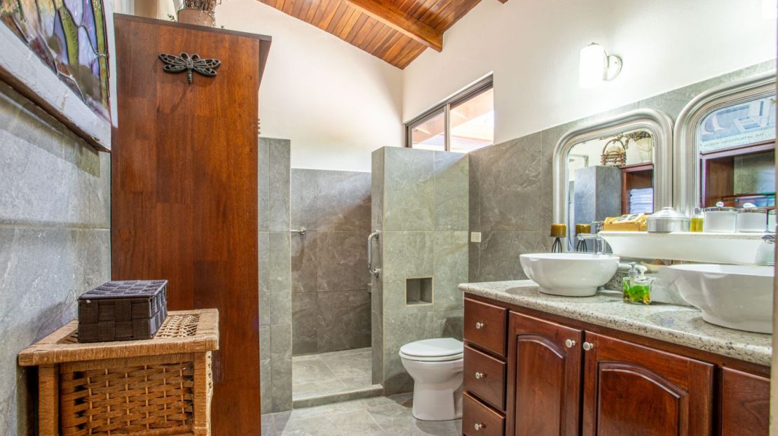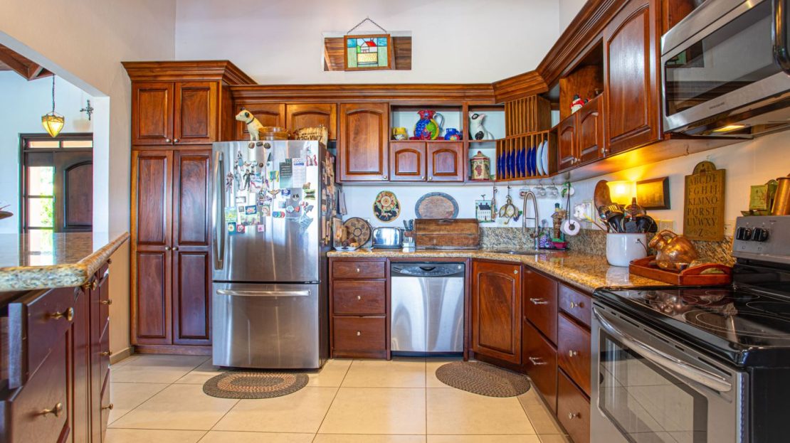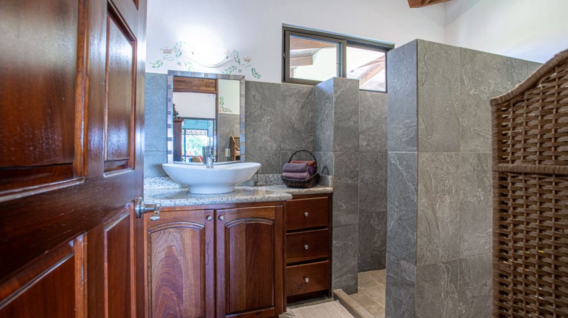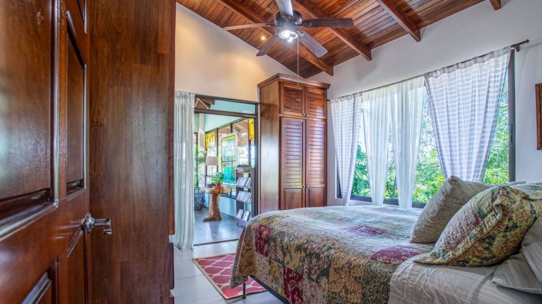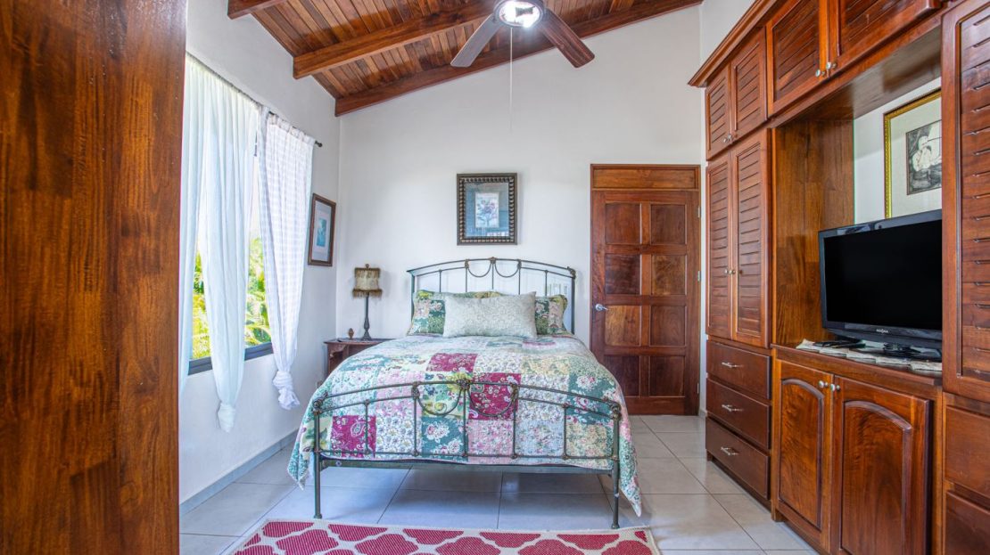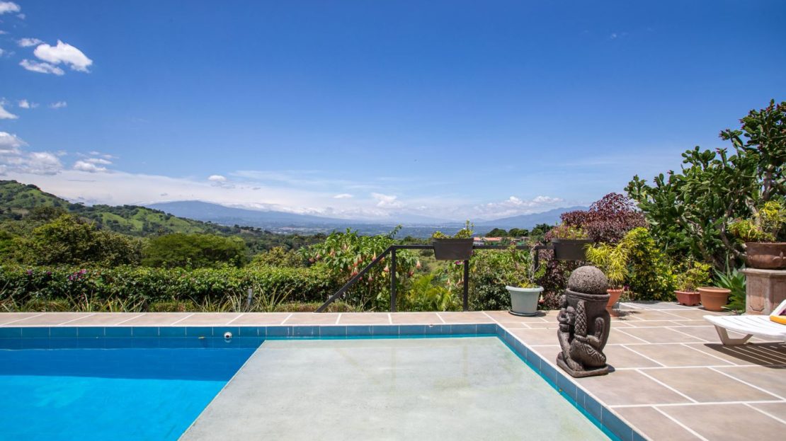 The main home features a large open floor plan with an ample kitchen ideal for chefs with plenty of room, an adjacent dining and spacious living room. This leads way to an extra large enclosed sun room perfect for those that want to enjoy the inside-outside feel of Atenas’ best climate. The home is finished with magestic artsenal woodwork throughout with wooden ceilings and beautiful craftsmanship in the kitchen, bathrooms and elsewhere. There is an enclosed garage. On the view side of the main home is a large inviting sun deck and nice size pool area.